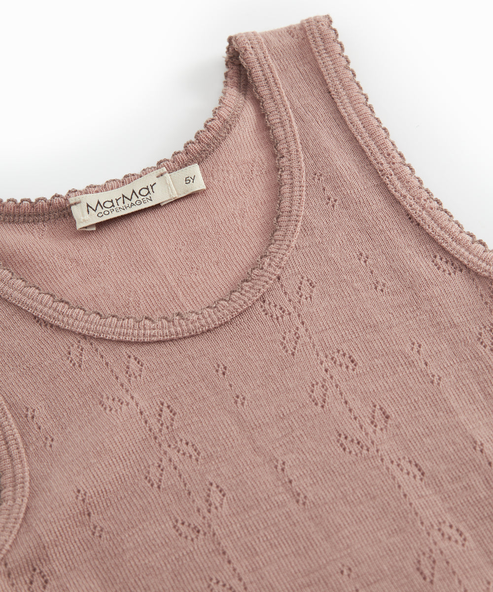 Strap Vest, Uld Pointelle Undertrøje - Burnt Rose