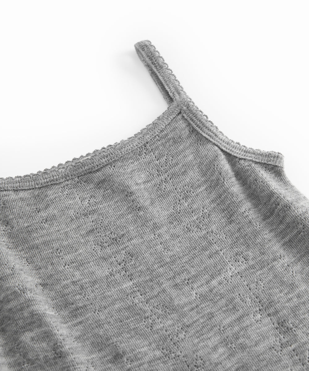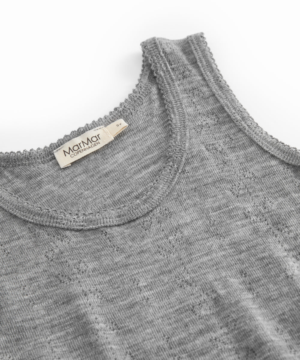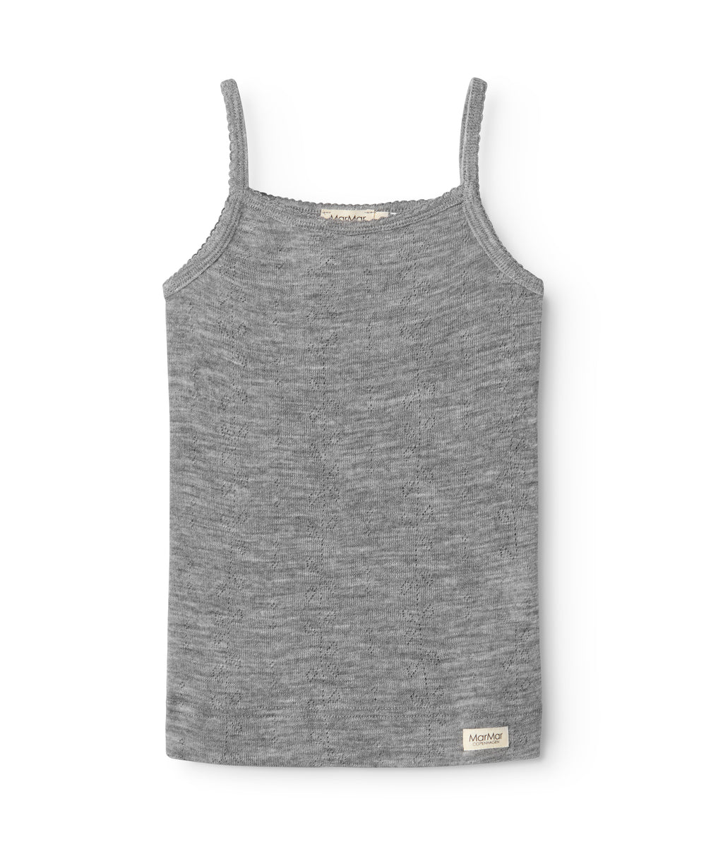 Strap Vest, Uld Pointelle Undertrøje - Grey Melange