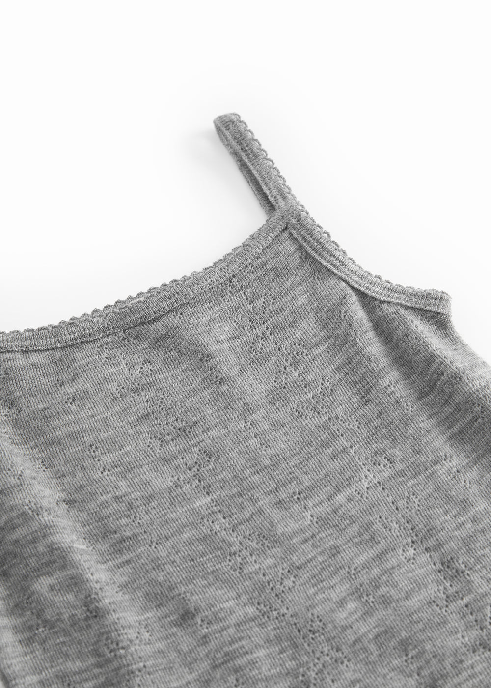 Strap Vest, Uld Pointelle Undertrøje - Grey Melange