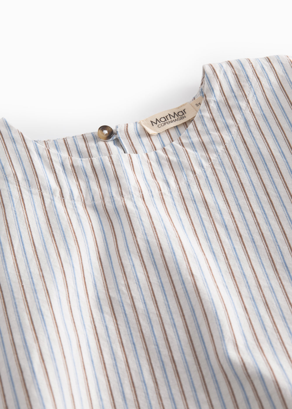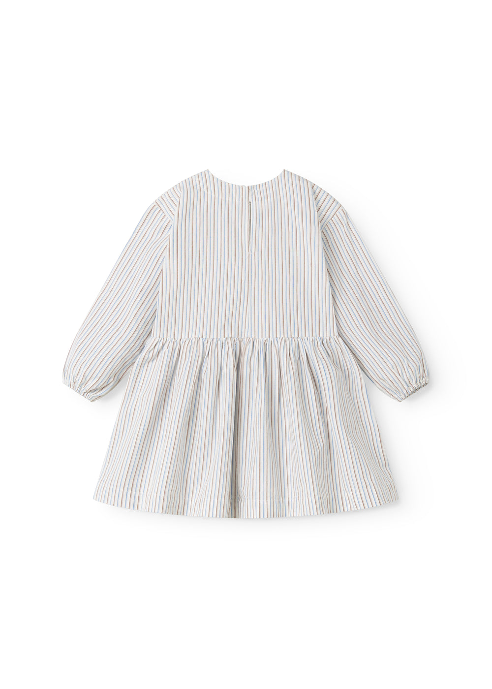 Langærmet stribet kjole til børn med løs pasform. Kjolen har to lommer foran og knaplukning bagpå. Kjolens længde går til over knæet. Kjolen har en rummelig og behagelig pasform og er blød at have på.