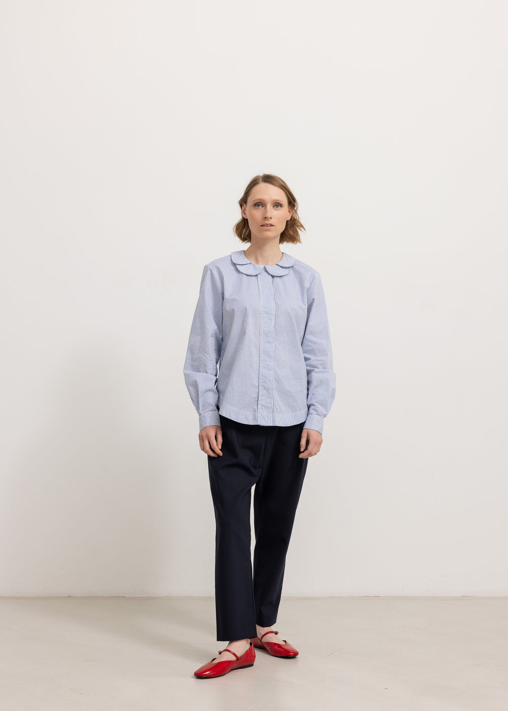 Klassisk skjorte med knaplukning og fin krave. Skjorten er en smule længere bagpå