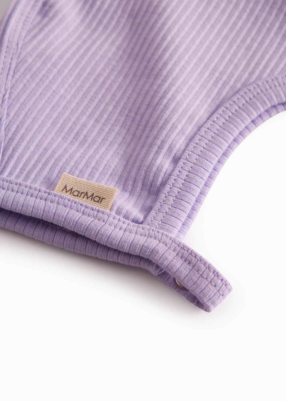 Fin lille baby modal hue som lukkes med trykknap i to længder. Huen er ribstrikket, blød, holder form og farve og har elastan i sig som gør den strækbar og behagelig at have på.