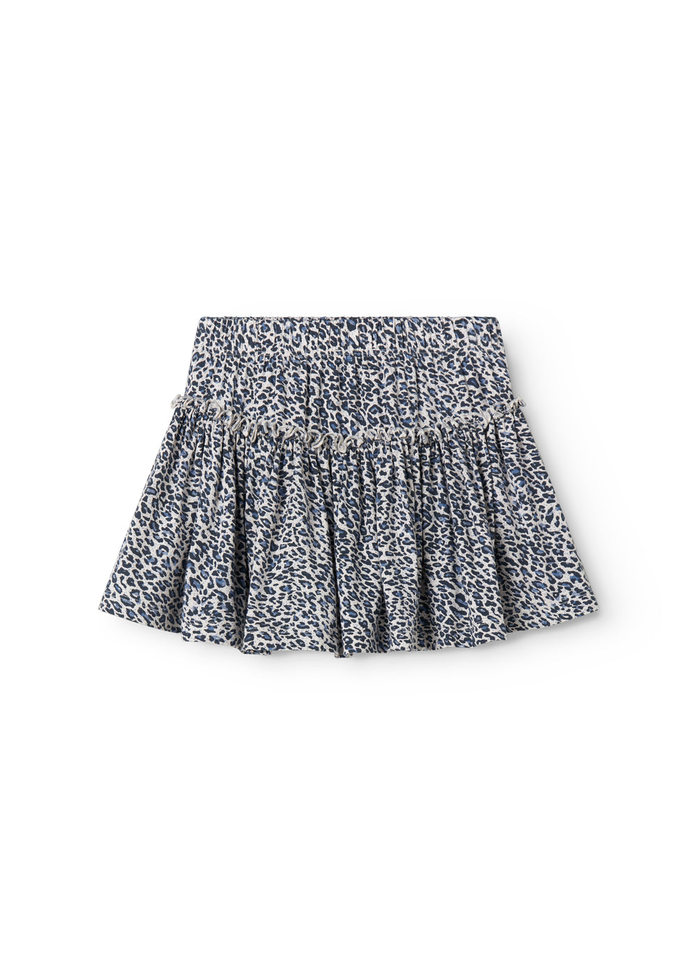 Nederdel i leopard med vidde og elastik i taljen samt et bærestykke, der skaber en fin form. Nederdelens længde går til over knæet. Nederdelen er både blød, strækbar og behagelig at have på.