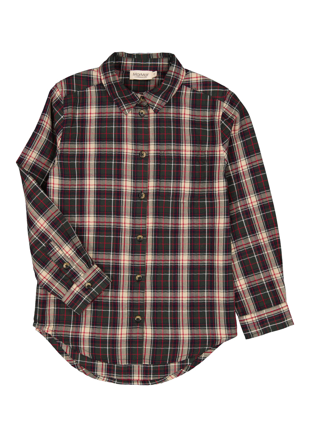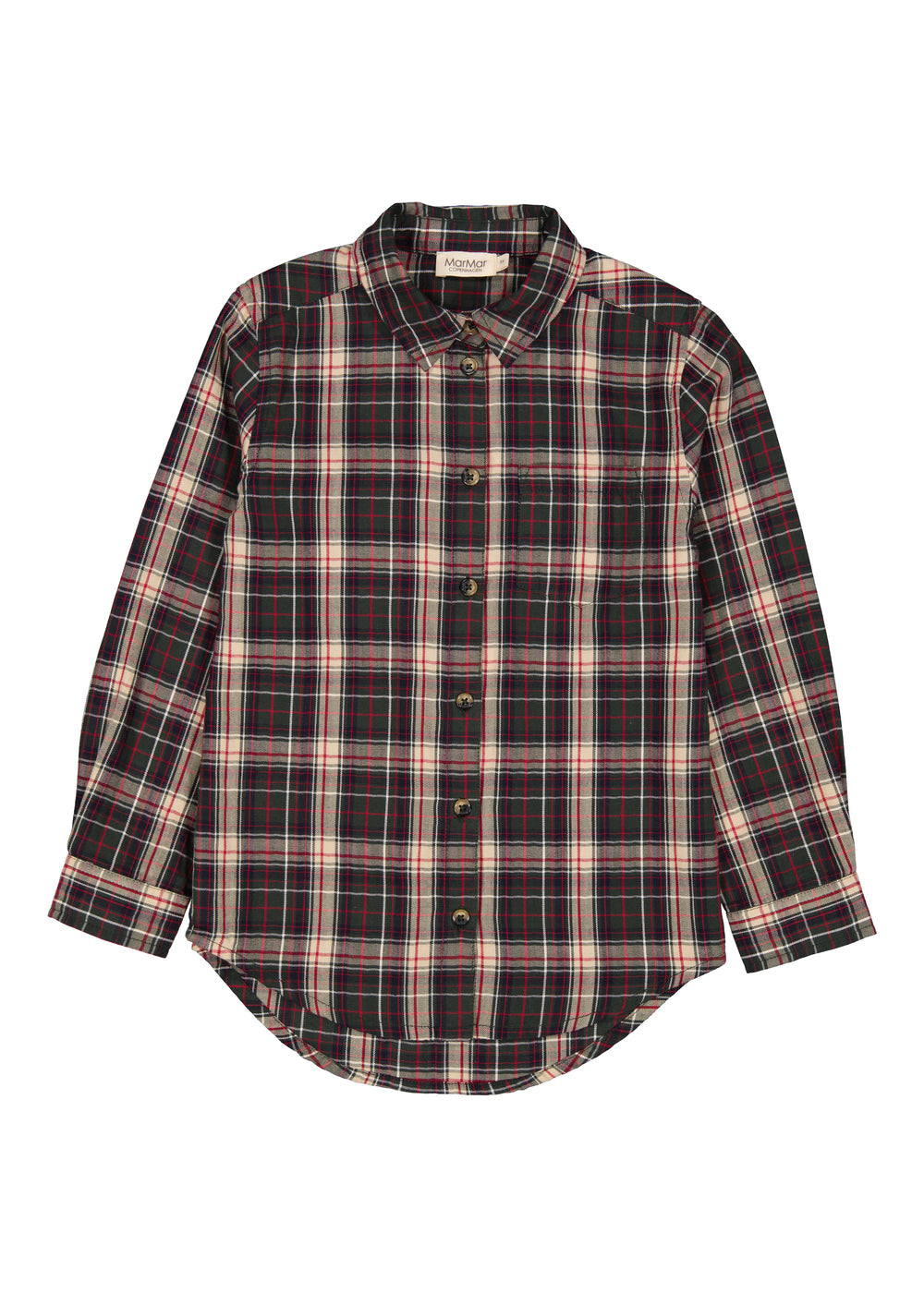 Klassisk skjorte med lomme foran og ærmer med manchet og knaplukning. Skjorten er lidt længere bagpå