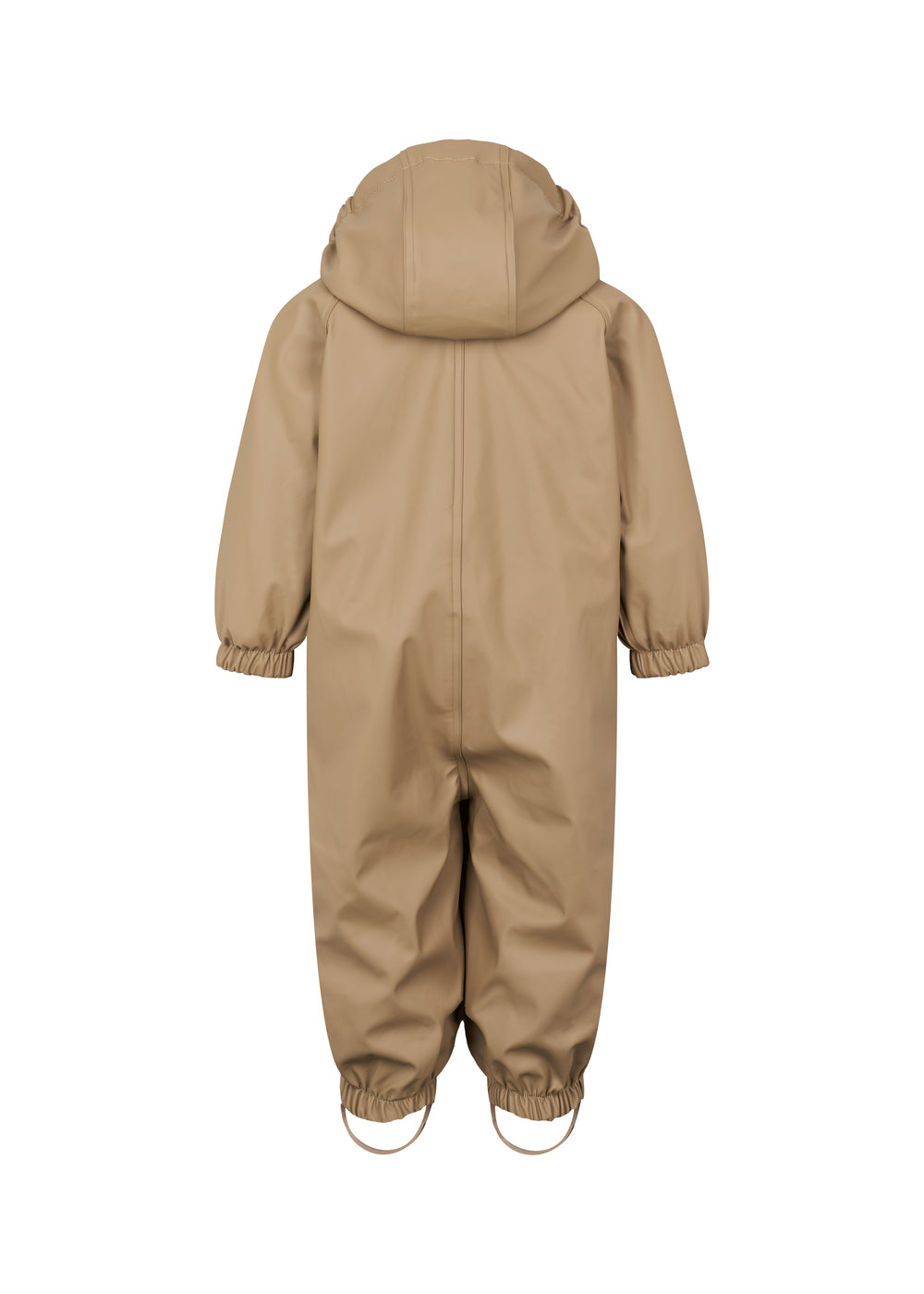 Beige regndragt til børn med hætte og elastikstropper