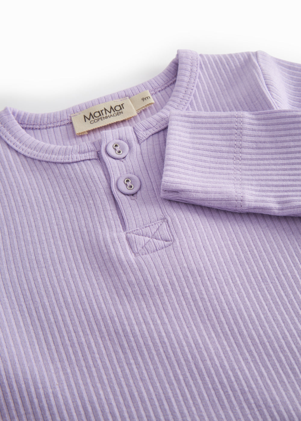 Langærmet baby modal bodystocking med stolpe knaplukning, der bliver lukket med trykknapper mellem benene for nem bleskiftning. Bodystockingen er både ribstrikket, blød, holder form og farve og har elastan i sig som gør den strækbar og behagelig at have på.