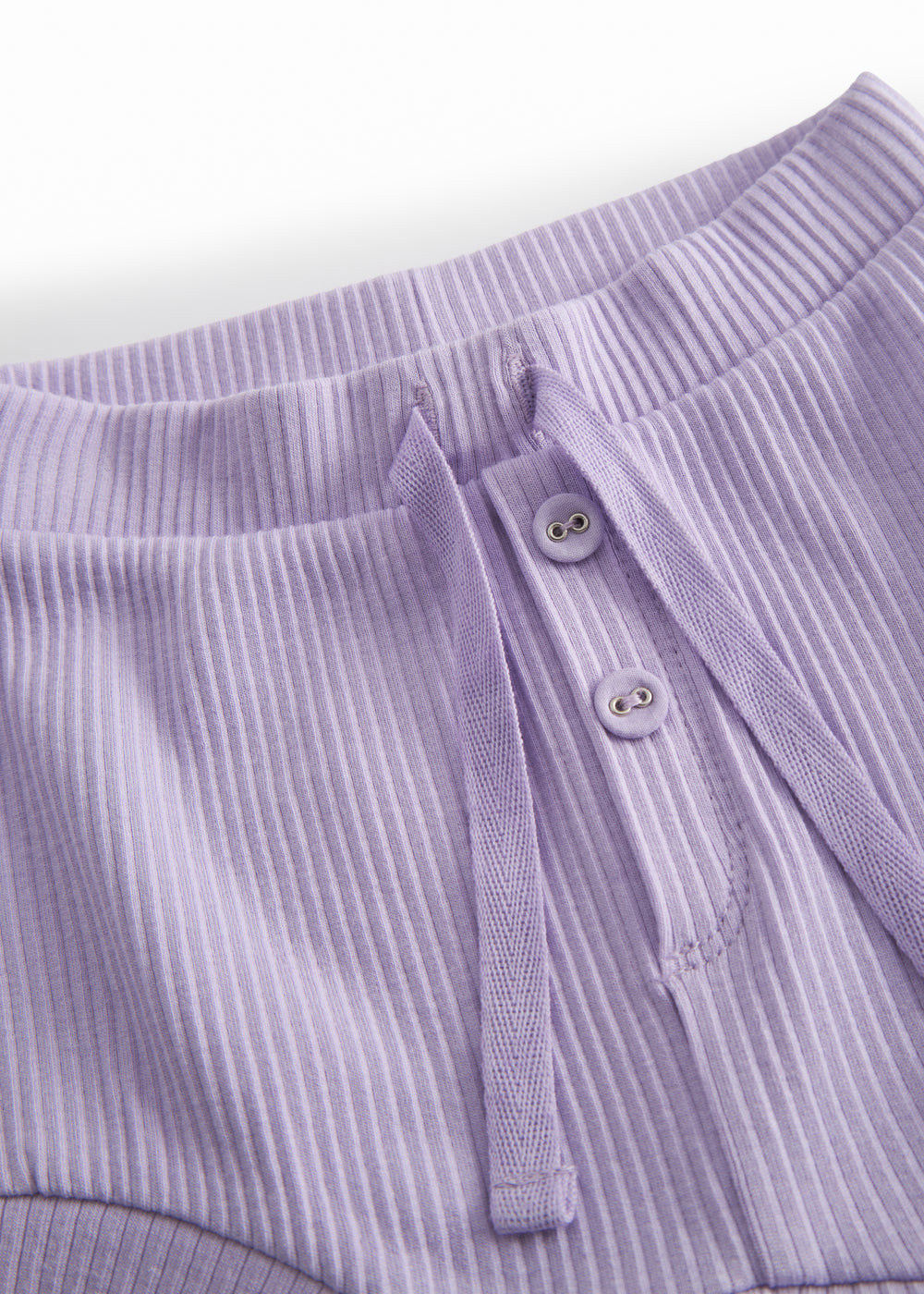Små bloomers med stolpe knaplukning og et pyntebånd i livet. Bloomersene er ribstrikket, bløde, holder form og farve og har elastan i sig som gør dem strækbare og behagelig at have på.