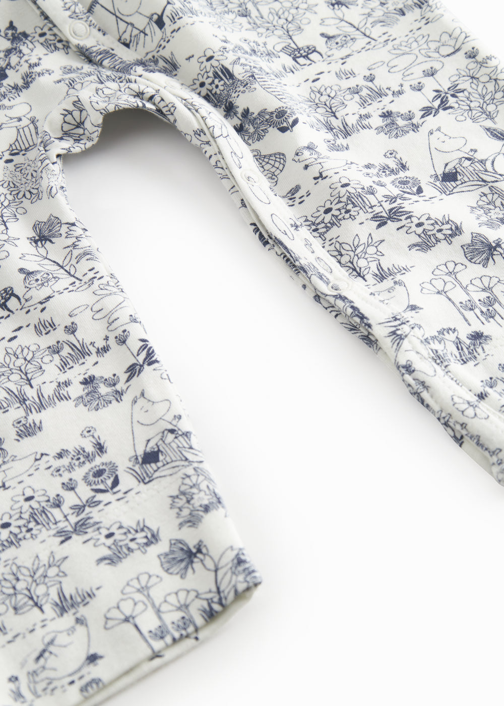 Rummelig baby heldragt med et sødt Moomin print og med trykknaplukning hele vejen fra halsåbning til bukseben. Heldragten kan knappes helt op på det ene ben for nem bleskiftning. Bodystockingen er både blød, strækbar og behagelig at have på.