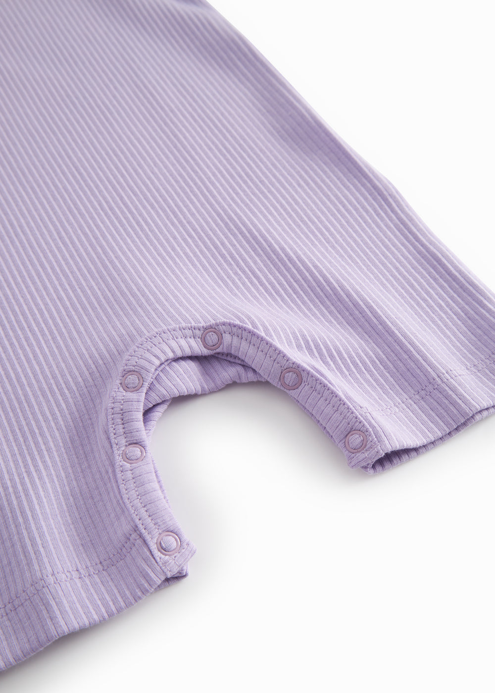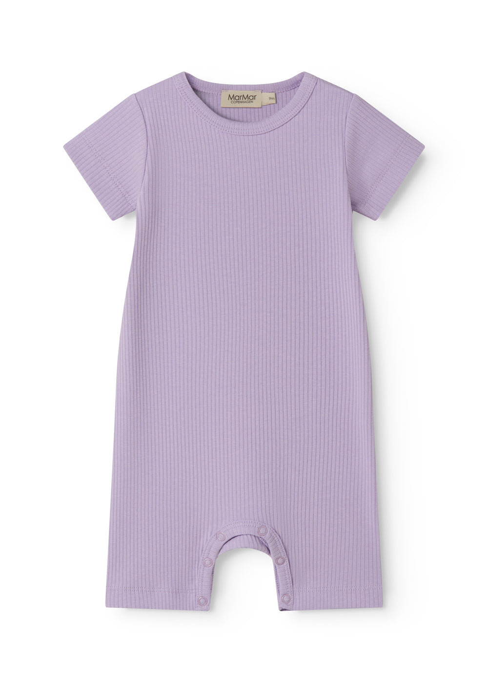 Kortærmet baby modal romper med korte ben, der bliver lukket med trykknapper mellem benene for nem bleskiftning. Romperen er ribstrikket, blød, holder form og farve og har elastan i sig som gør den strækbar og behagelig at have på.