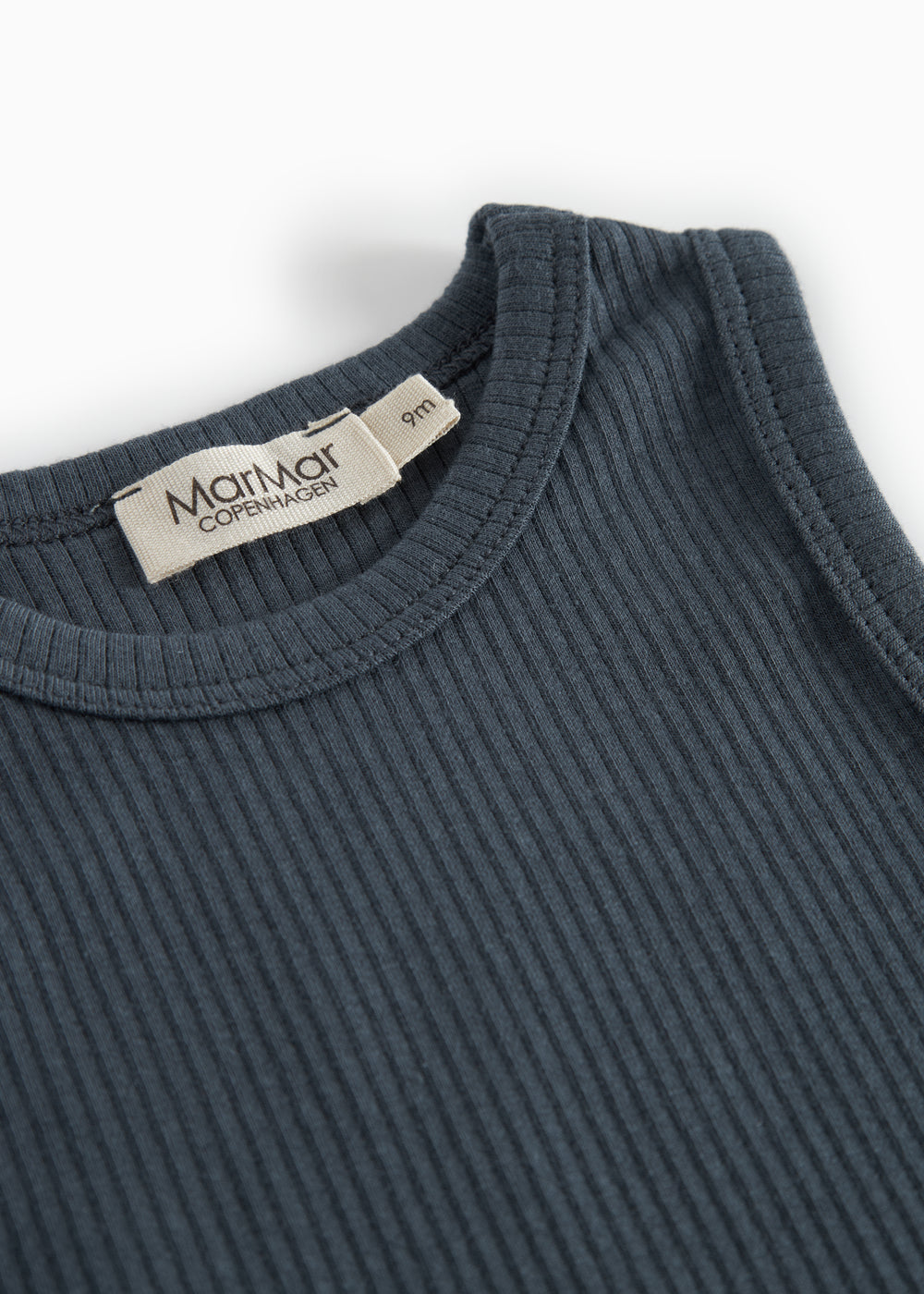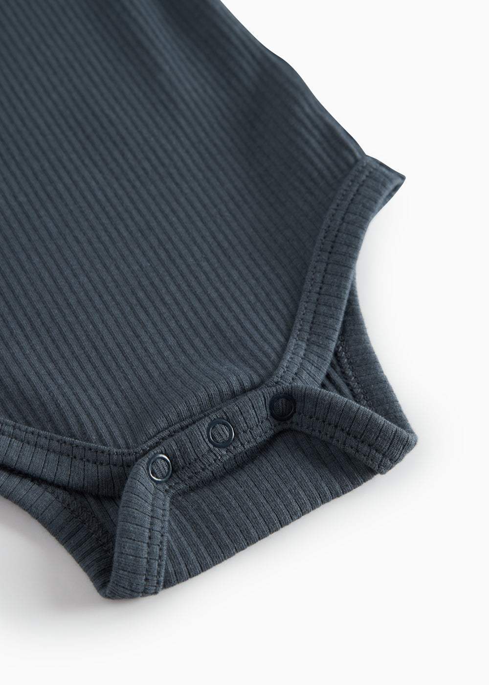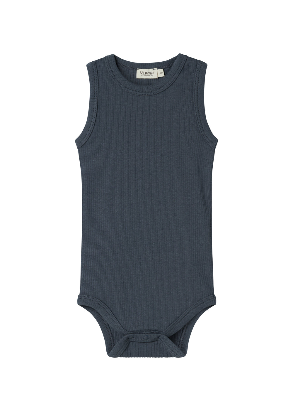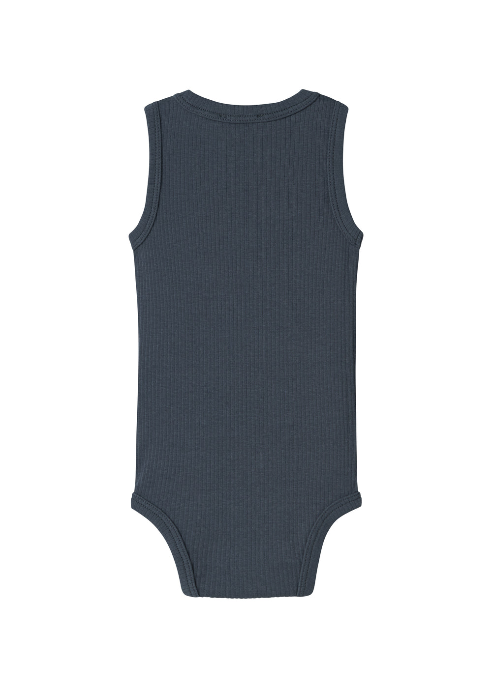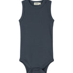 Bodystocking uden ærmer, der bliver lukket med trykknapper mellem benene for nem bleskiftning.