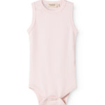 Bodystocking uden ærmer, der bliver lukket med trykknapper mellem benene for nem bleskiftning.