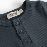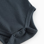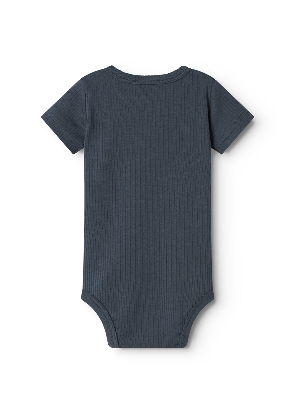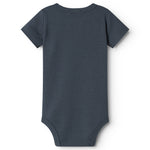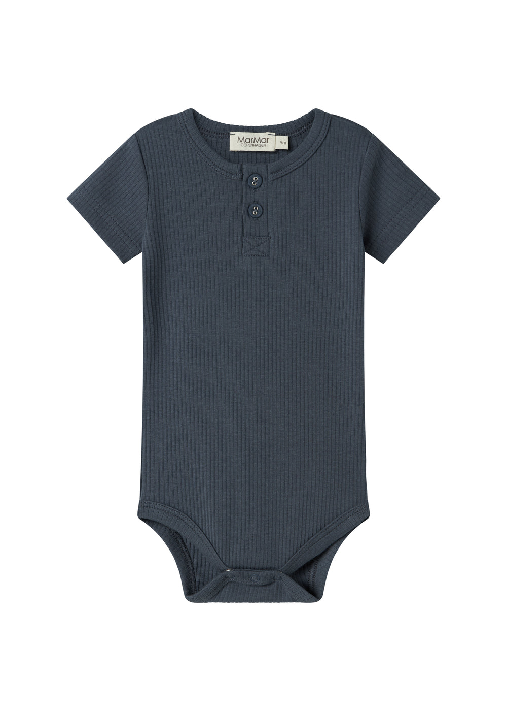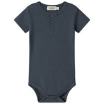Kortærmet baby modal bodystocking med stolpe knaplukning, der bliver lukket med trykknapper mellem benene for nem bleskiftning.