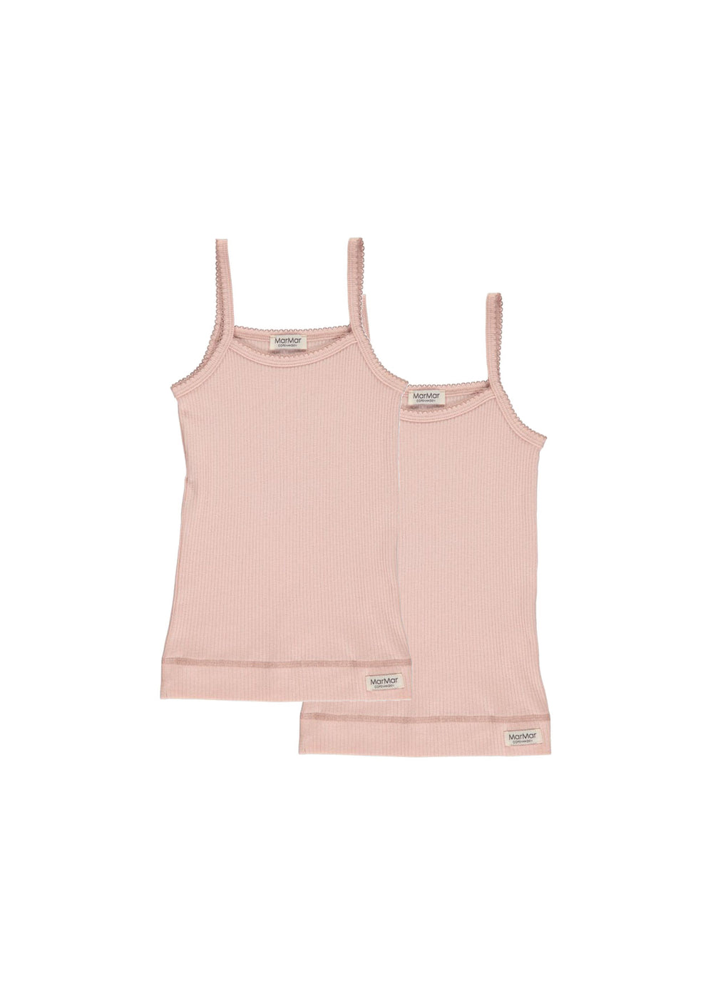 Blød og lang undertrøje med tynde stropper og picot kant, sælges som 2-pak