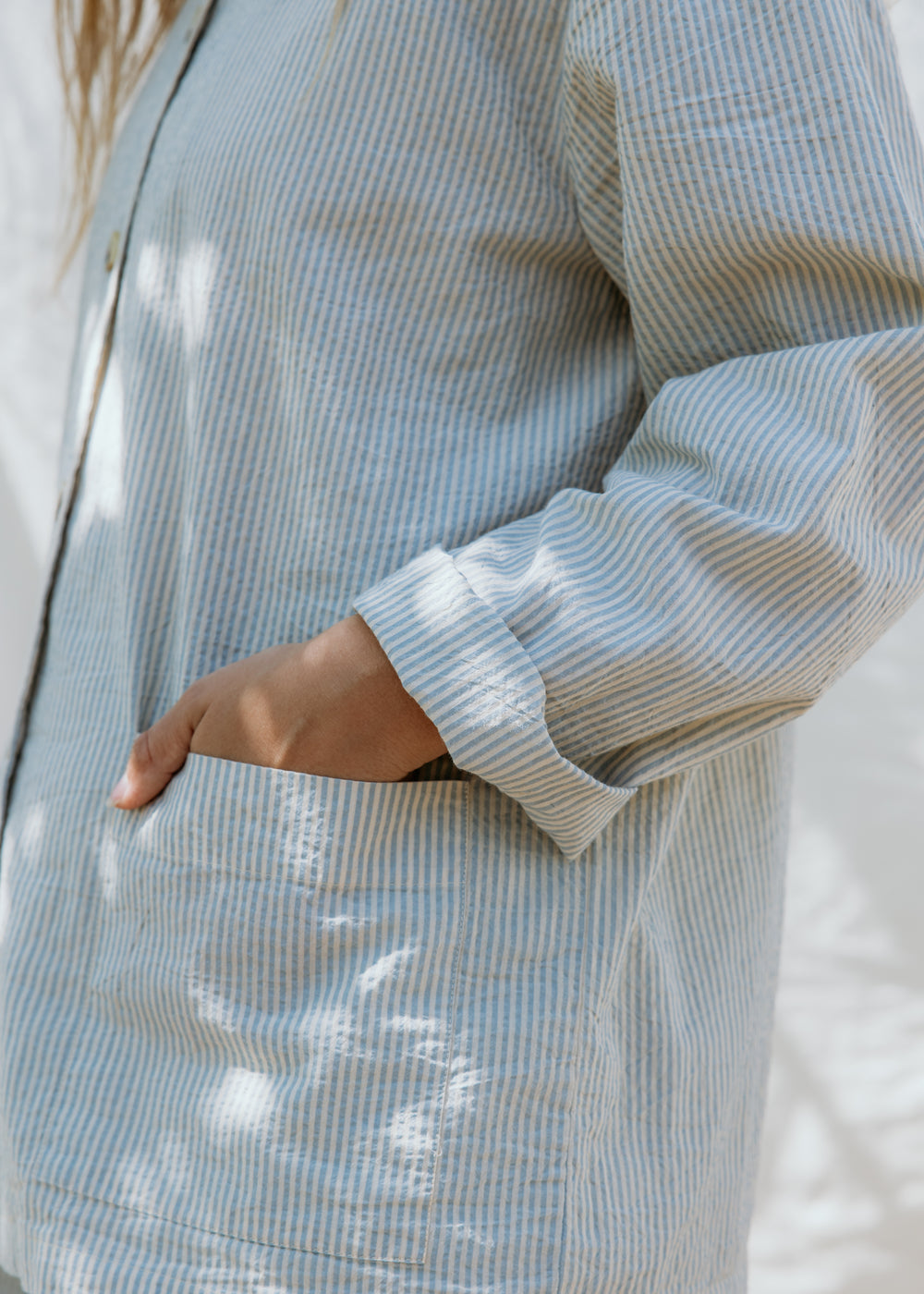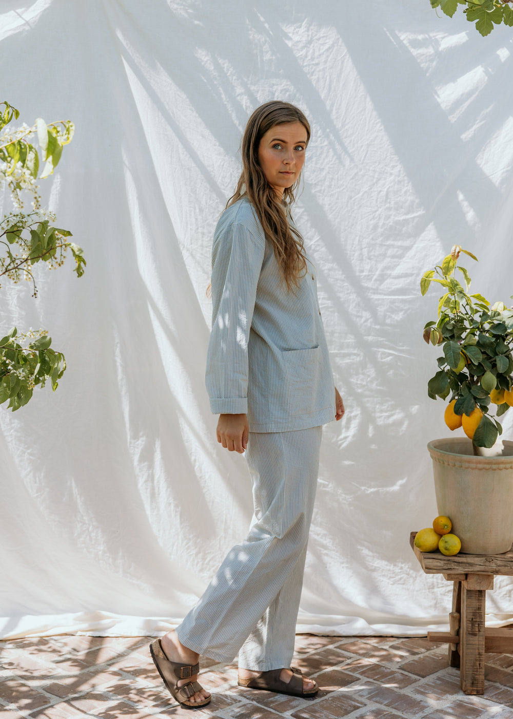 Pajama Set W, Pyjamassæt - Blue Stone Stripe