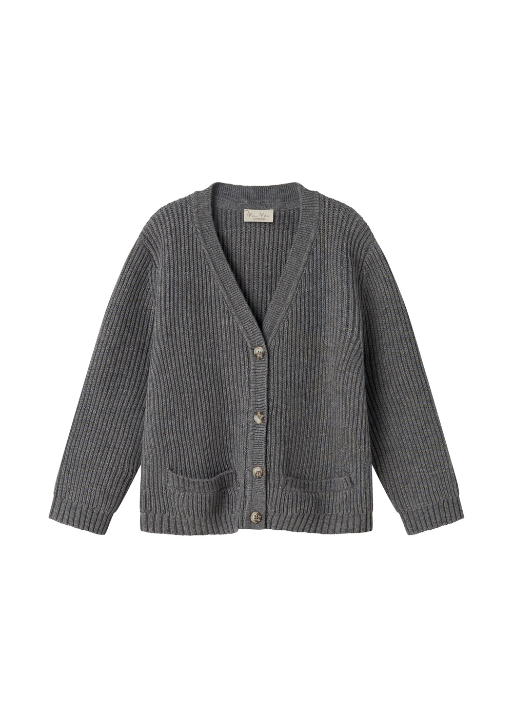Langærmet strik cardigan til kvinder i kraftig ribstrik med v-udskæring, knaplukning foran og to små frontlommer. Cardiganen er afsluttet med ribkanter ved ærmer og bund for en god pasform. Cardiganen er både varm og behagelig at have på.