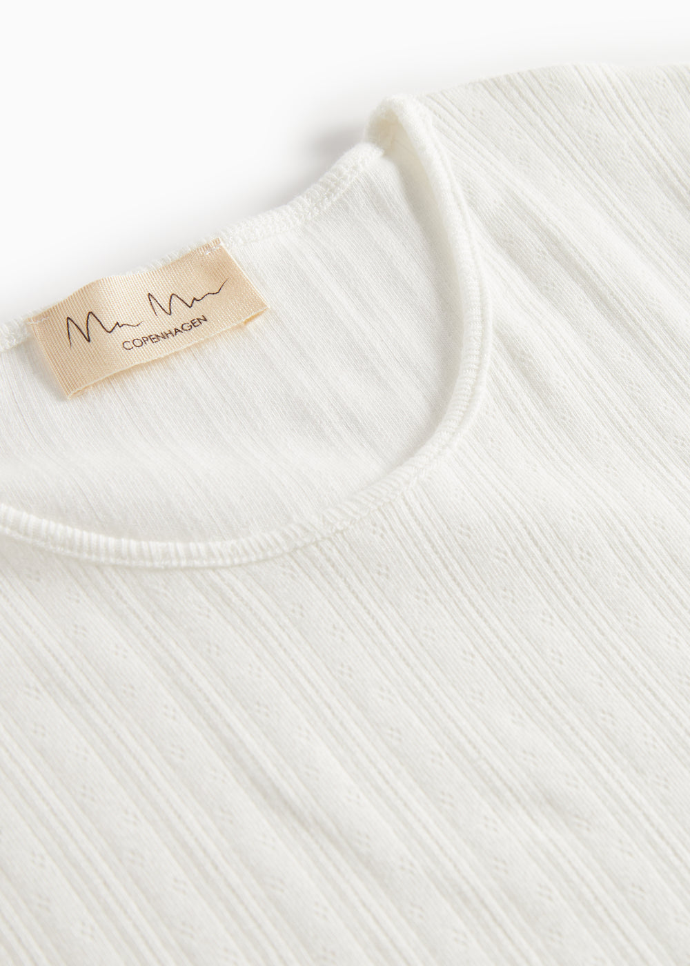 Enkel langærmet pointelle t-shirt til kvinder. T-shirten er blød, strækbar og behagelig at have på.
