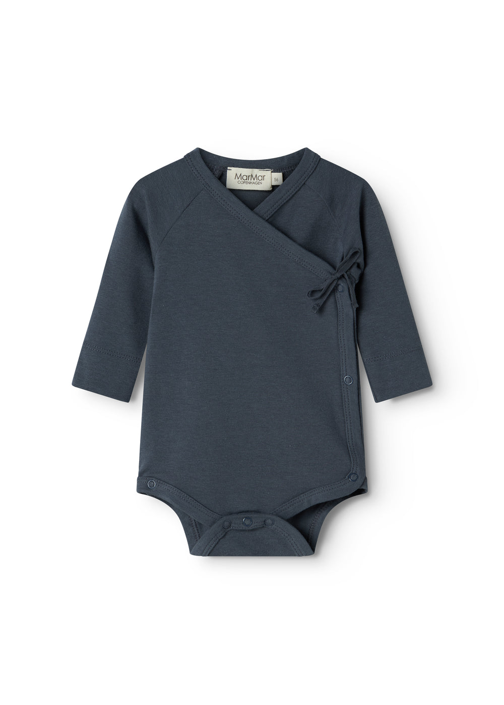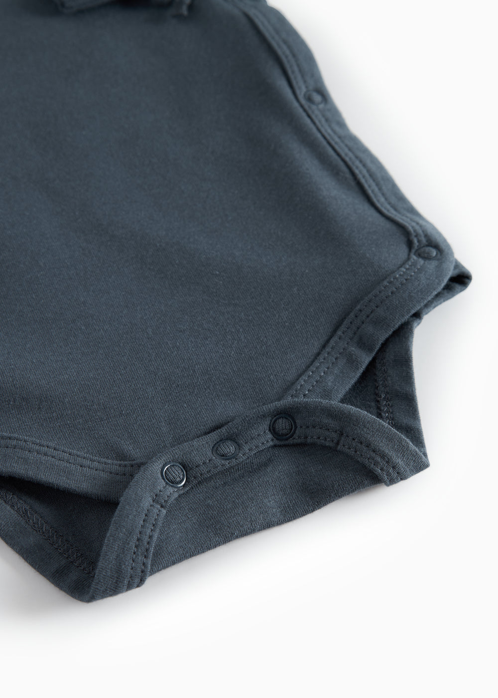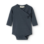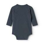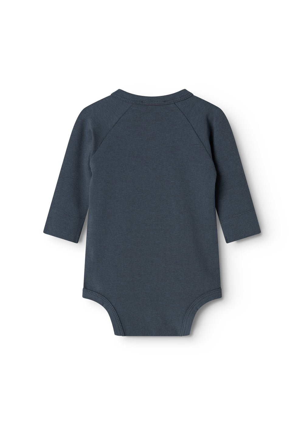 Langærmet bodystocking til nyfødte med slå-om-lukning.