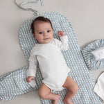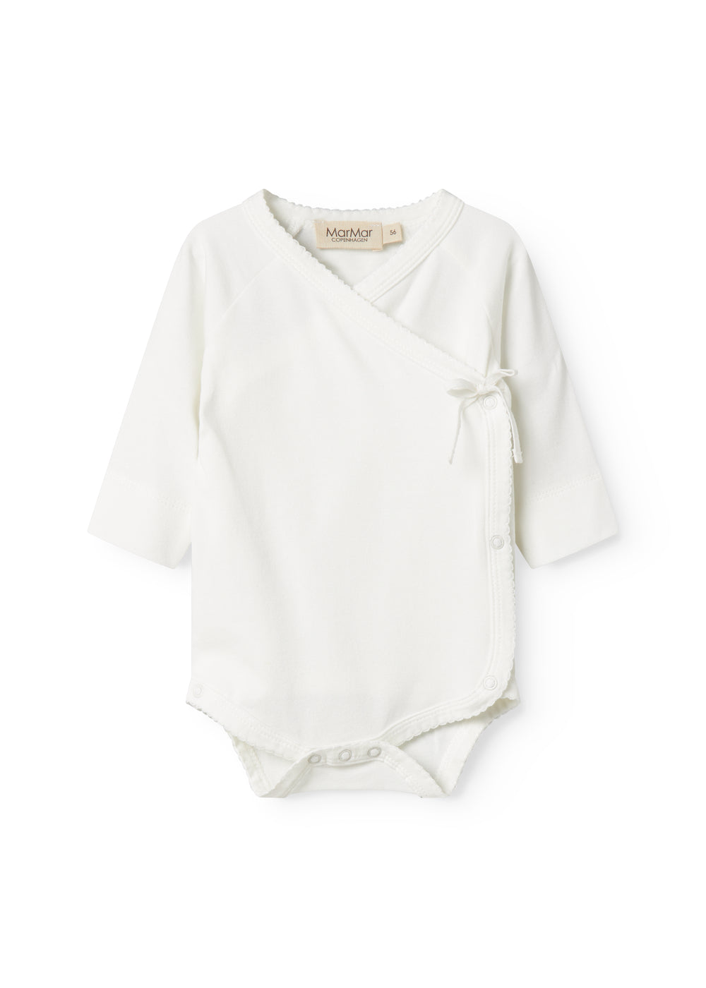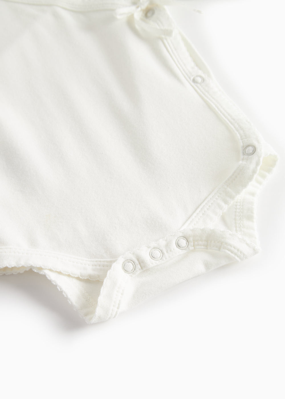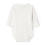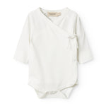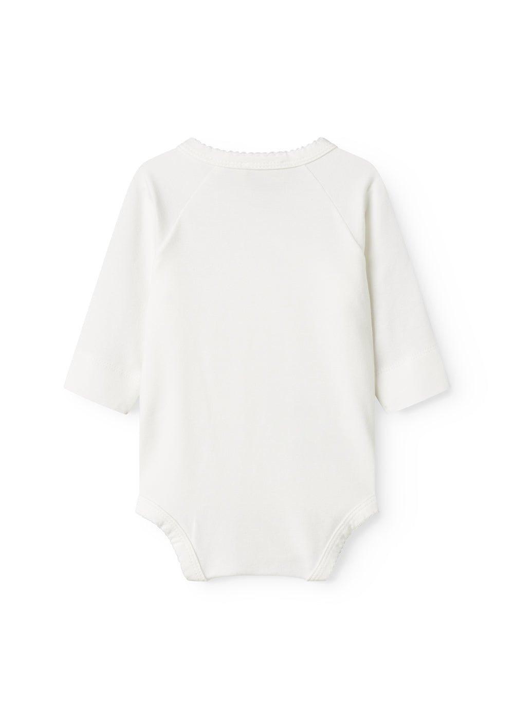 Langærmet bodystocking til nyfødte med slå-om-lukning.