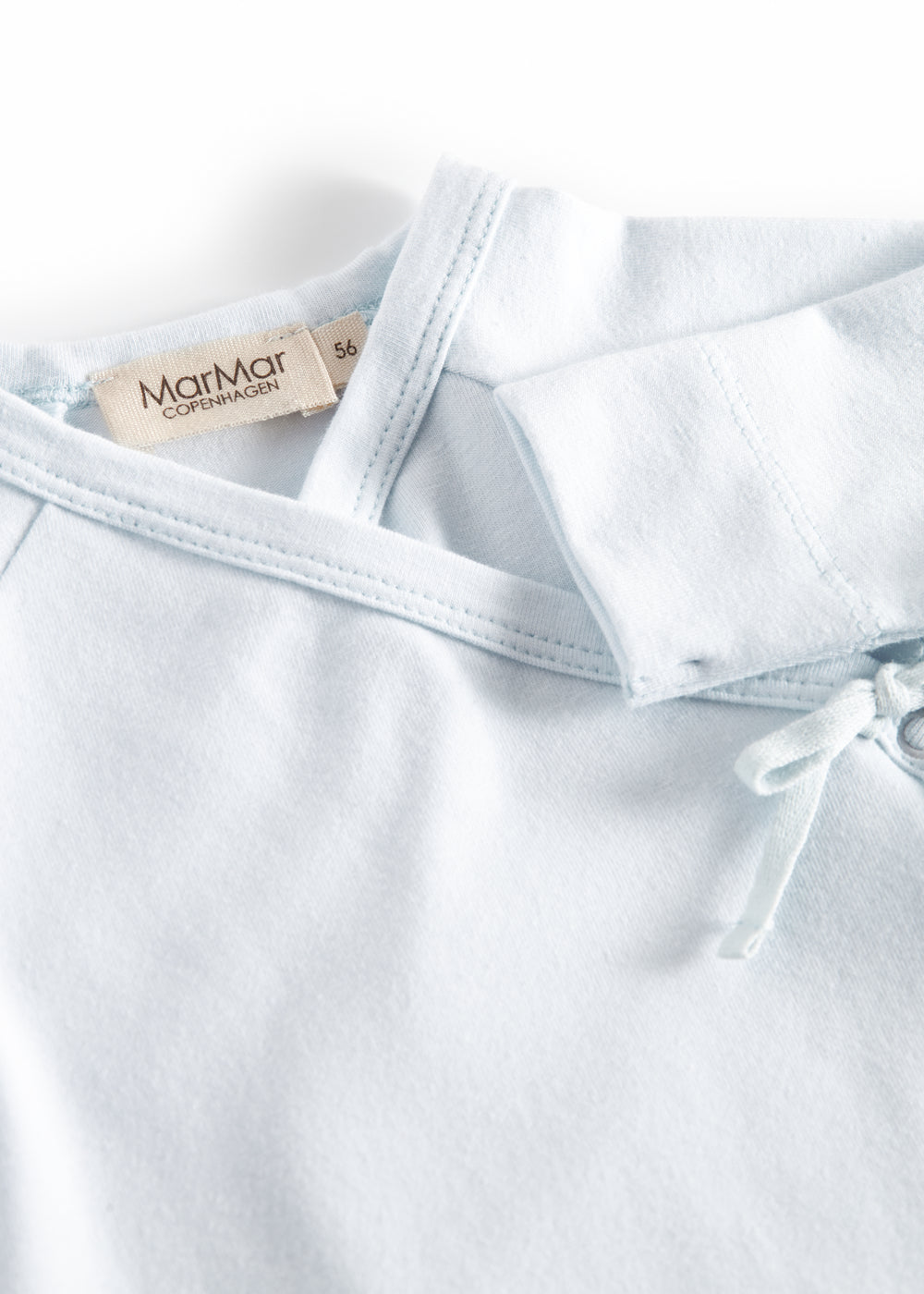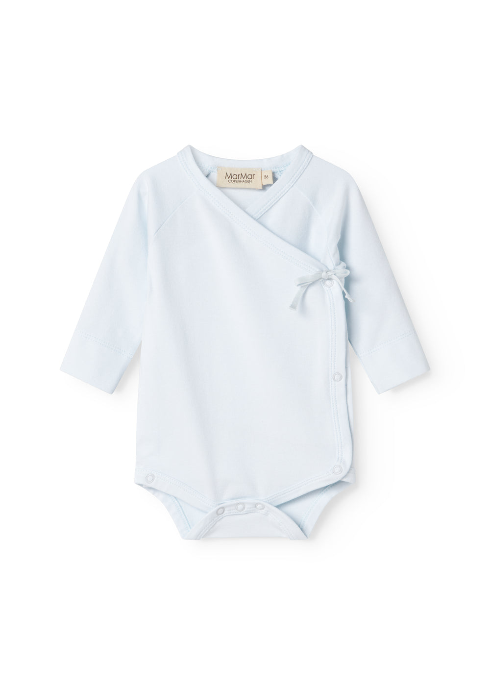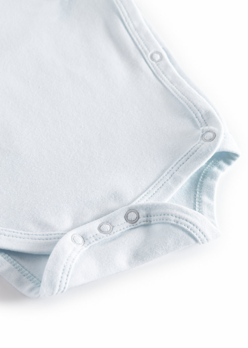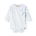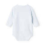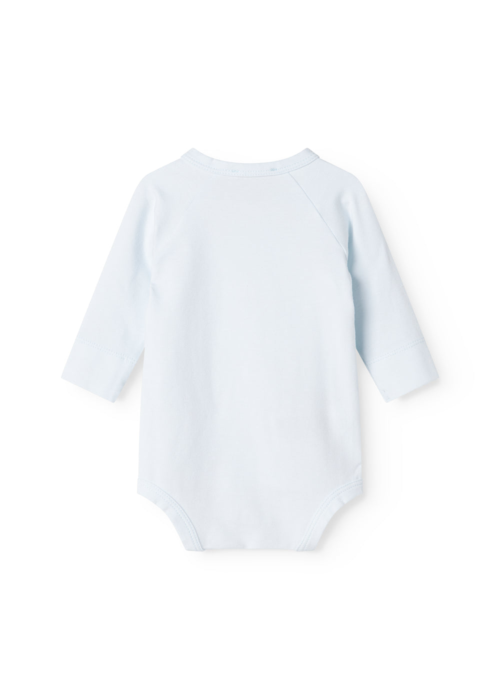 Langærmet bodystocking til nyfødte med slå-om-lukning.