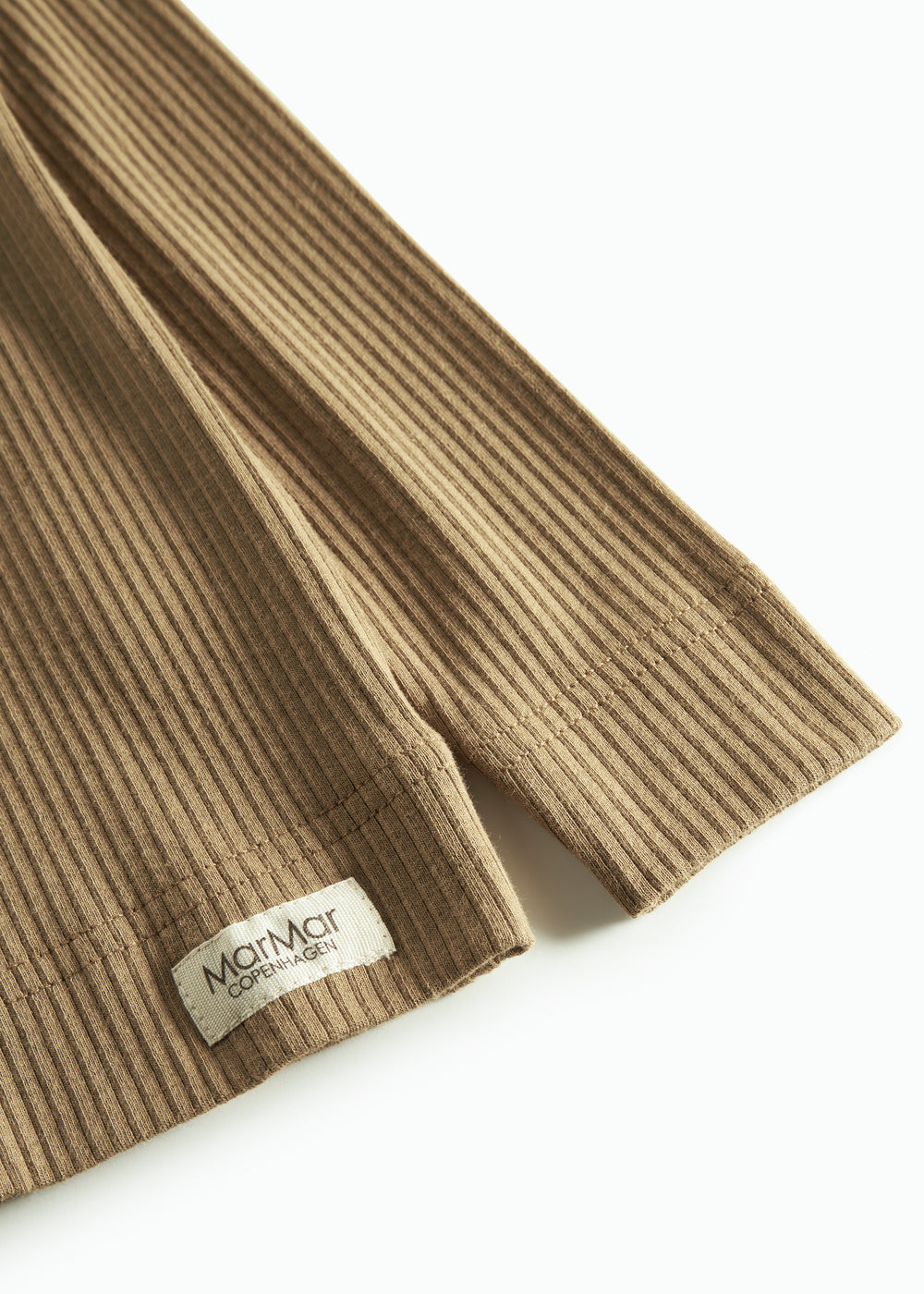 Langærmet t-shirt til børn med stolpe knaplukning. T-shirten er ribstrikket, blød, strækbar og behagelig at have på.