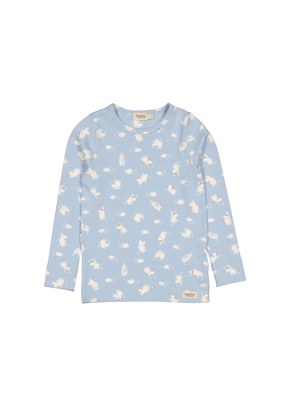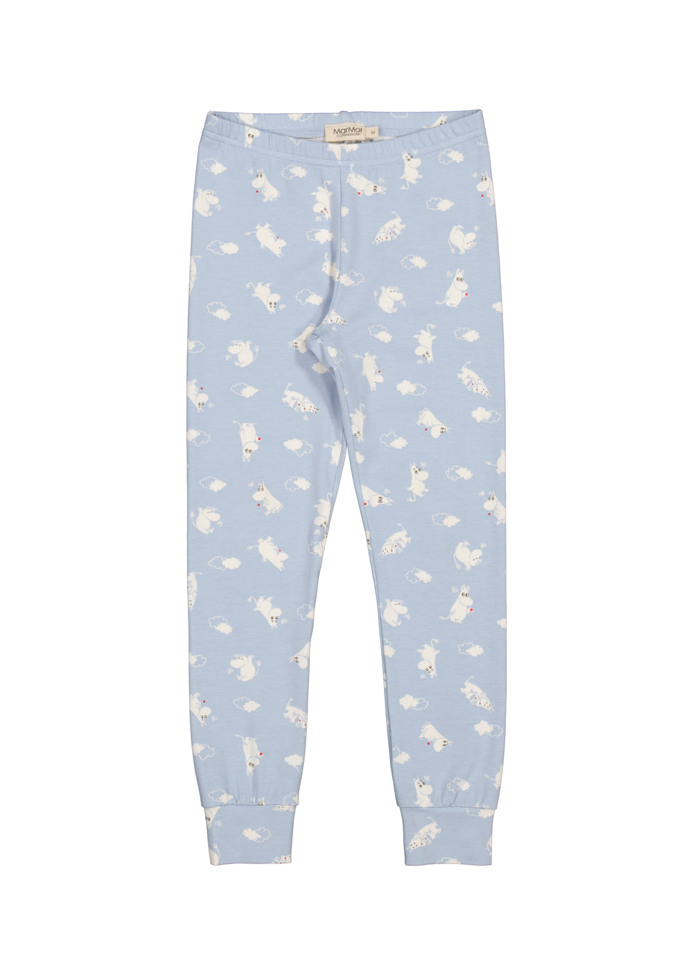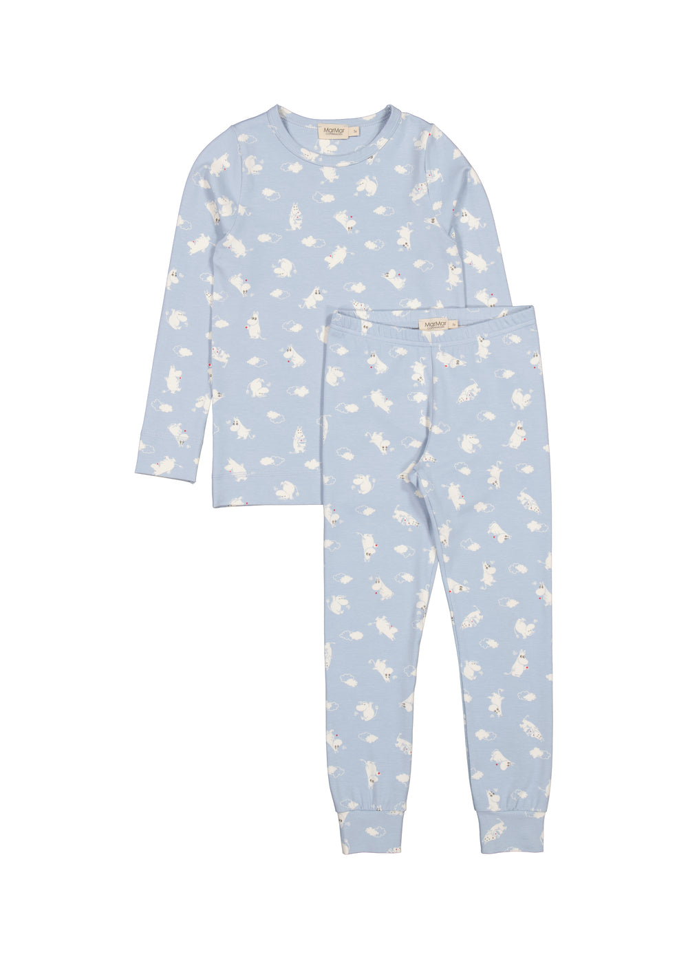 Enkelt og behageligt nattøj sæt til børn med et fint Moomin print. Nattøjet er både blødt, strækbart og behageligt at have på