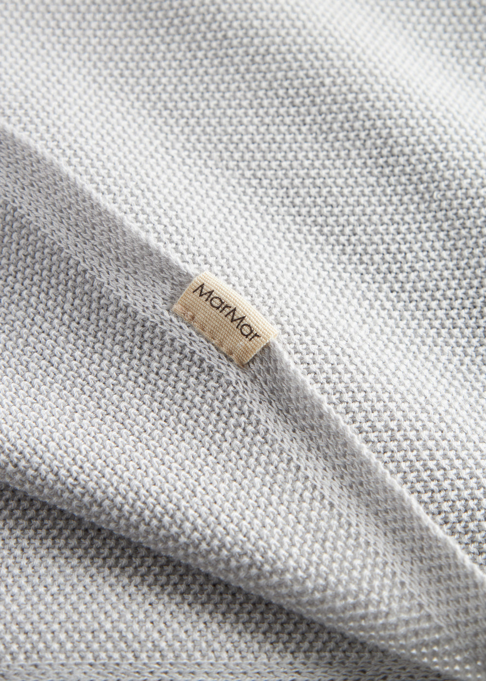 Tæppe i perlestrik, måler 70cm x 100cm. Tæppet er både blødt og behageligt at have på.