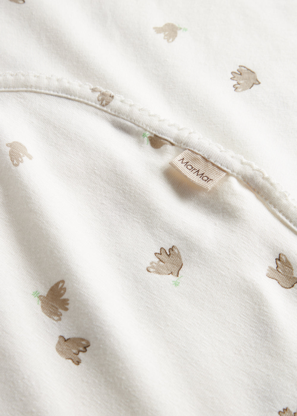 Baby tæppe med rundede hjørner. Tæppet måler 80 x 80 cm. og har et fint print, er både blødt, strækbart og behageligt at have på.