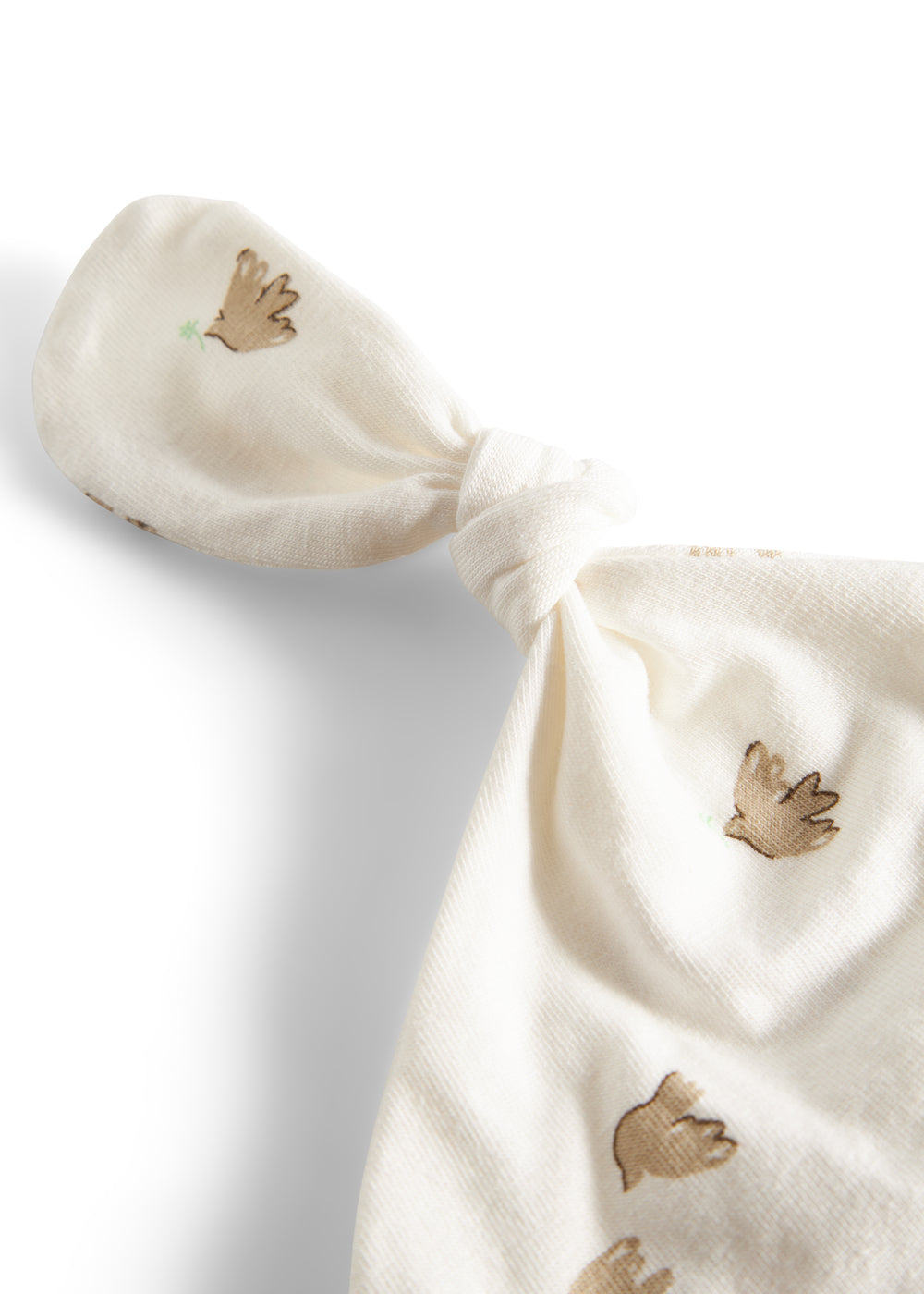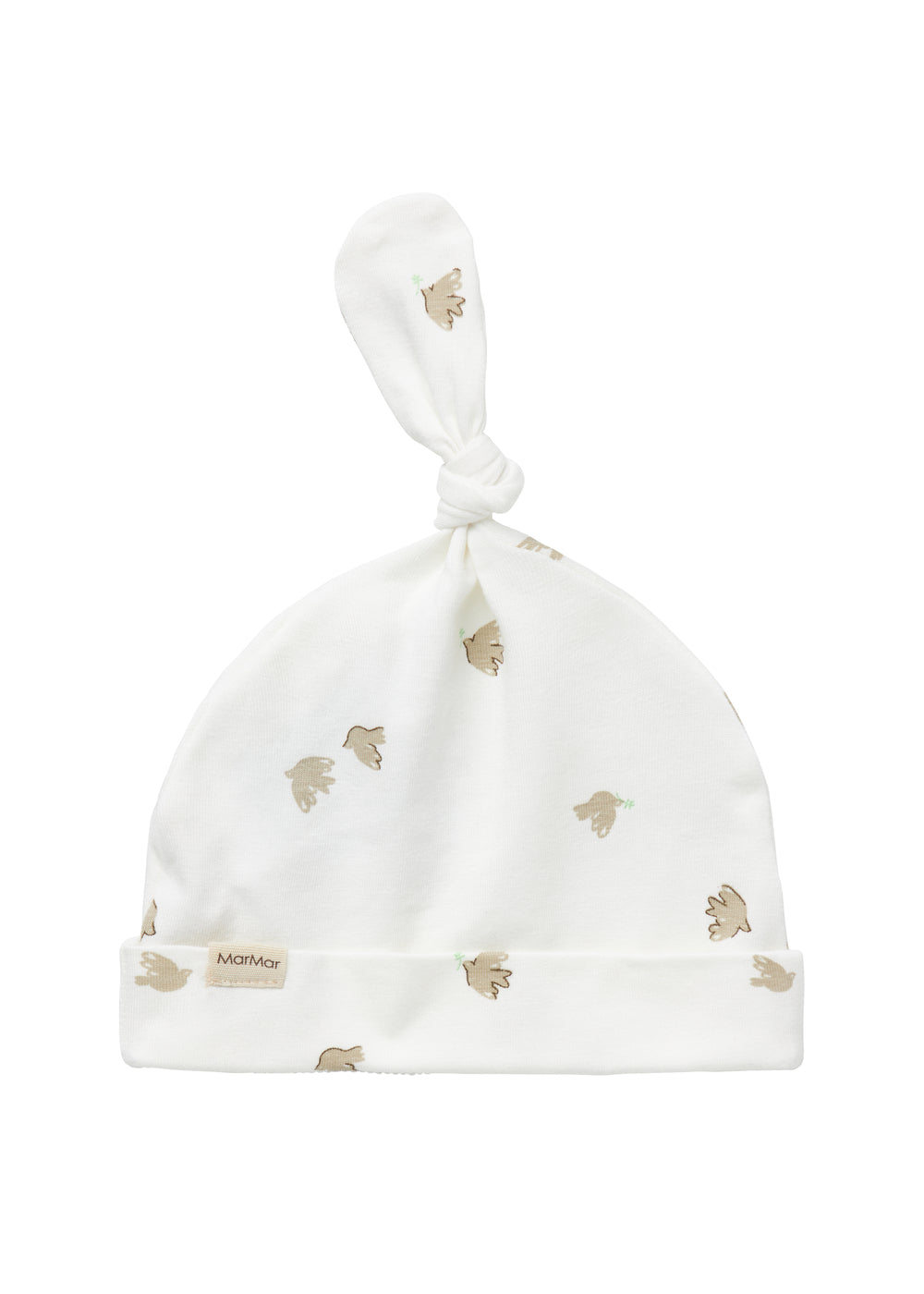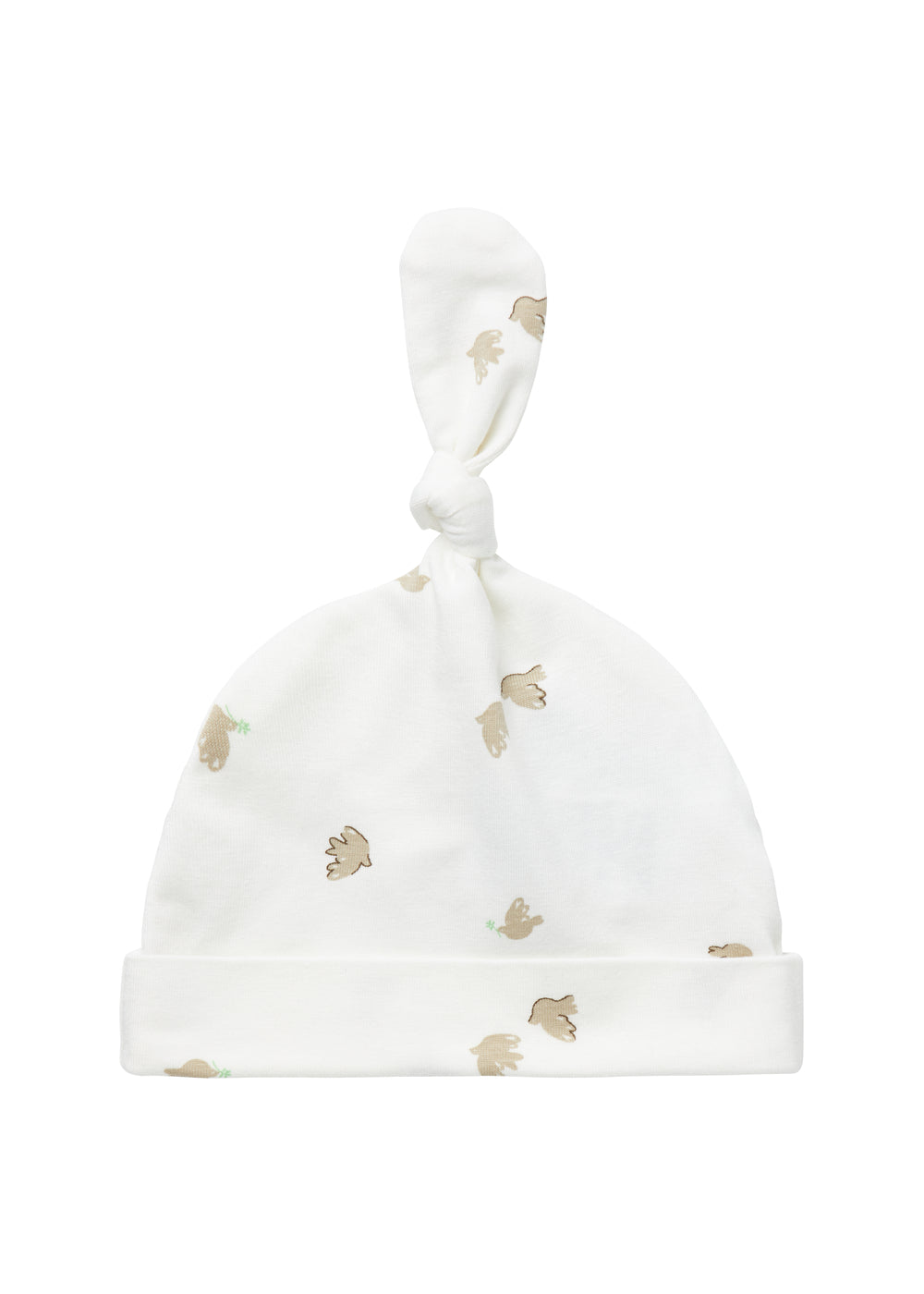 Lille hue til nyfødt med kant der kan foldes ned og med en sød knude på toppen.
