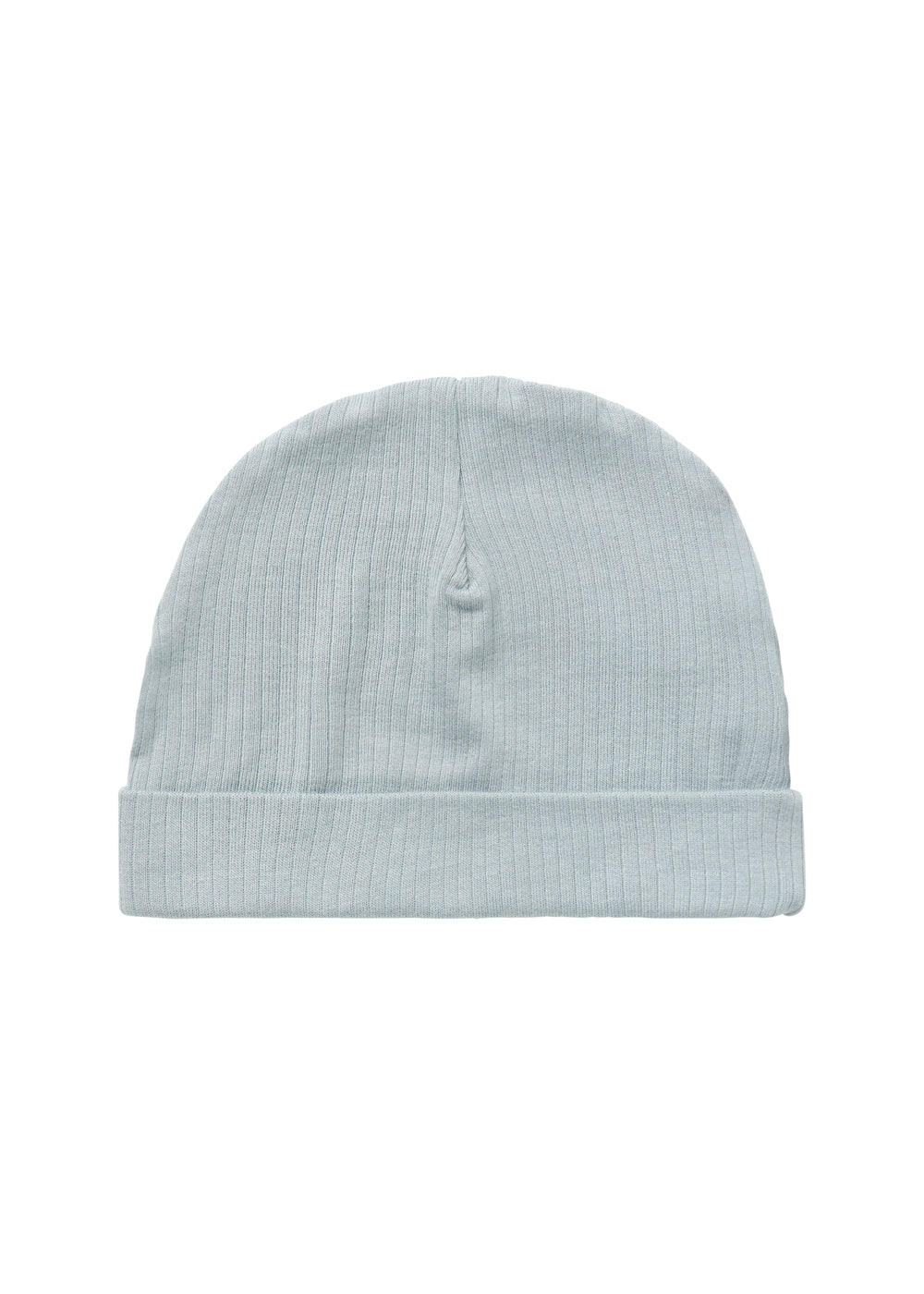 Lille hue til nyfødt med kant der kan foldes ned eller op. Huen er utrolig blød, meget strækbar og behagelig at have på.
