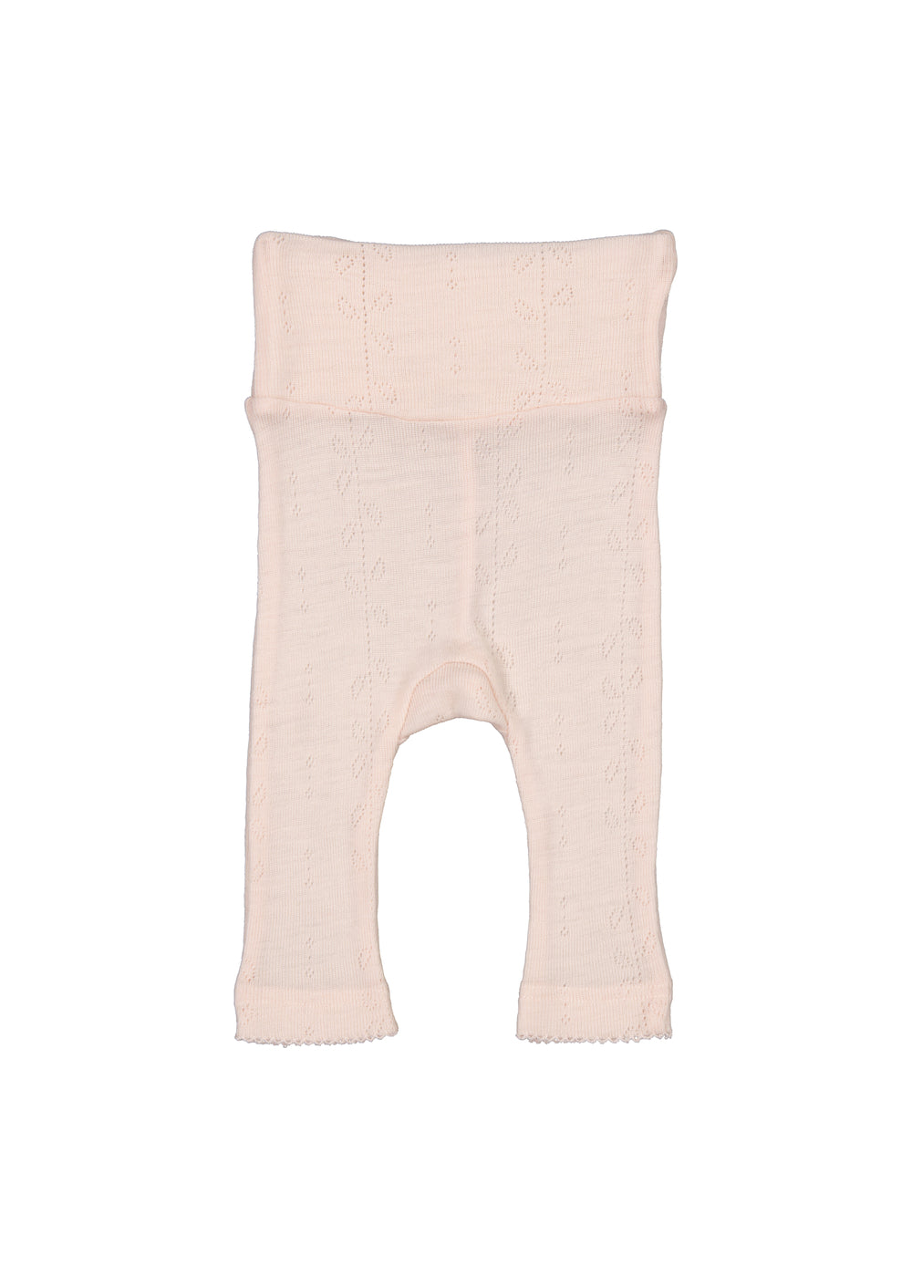 Behagelige bukser i 100% merino uld til de nyfødte. Bukserne har fine pointelle detaljer.