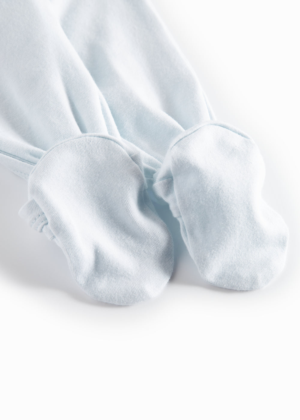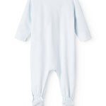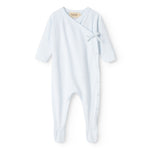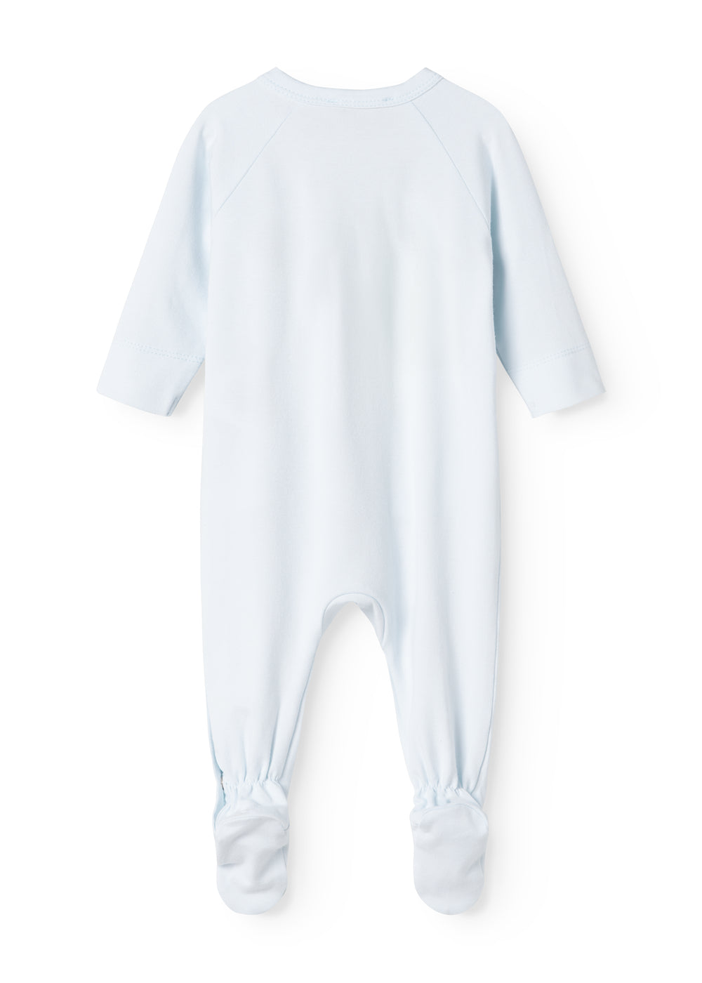 Heldragten har slå-om-lukning og lukkes med trykknapper og bindebånd fra halsen og ned langs det ene ben.