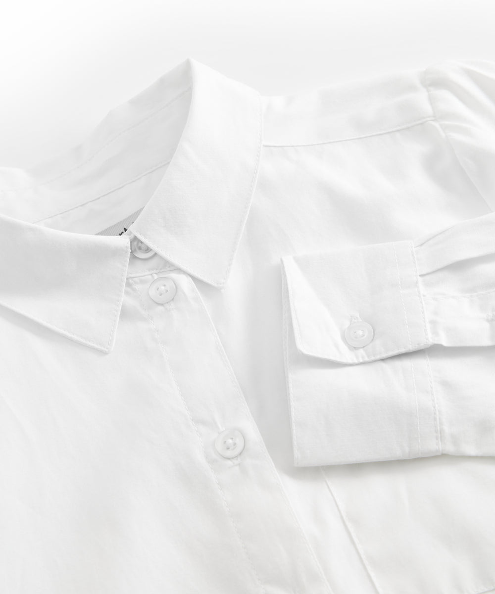 Hvud festbluse med hvid krave og små blomsterbroderier til børn