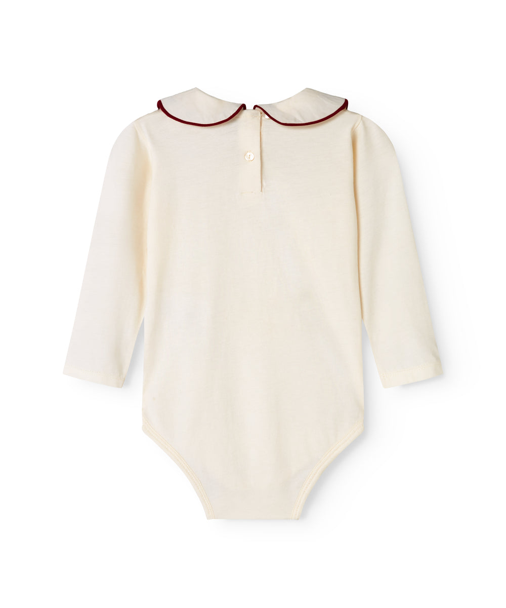 Hvid bodystocking med krave og fine blomsterbroderier til baby