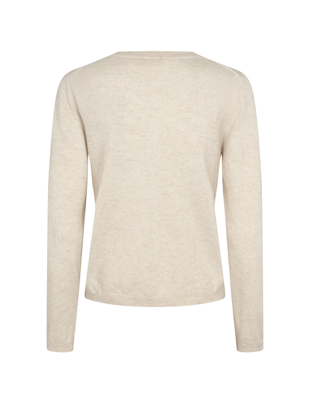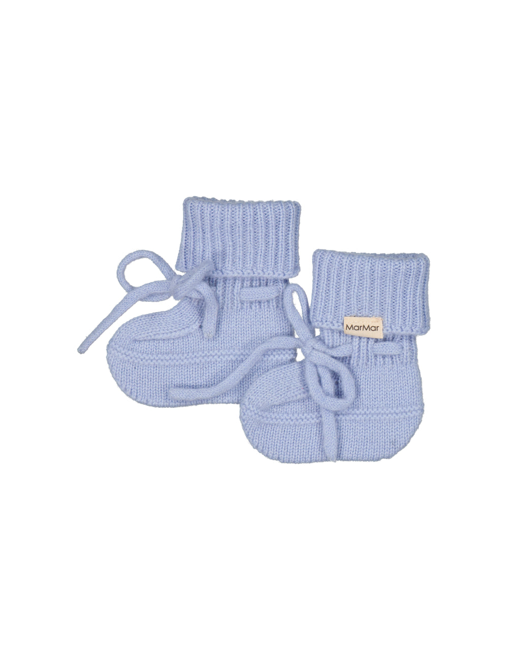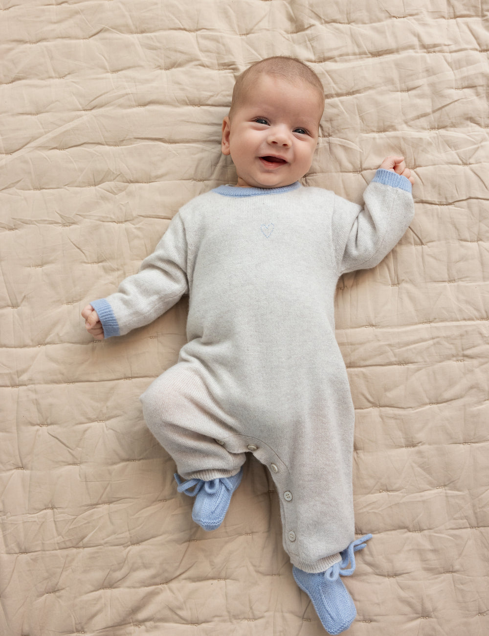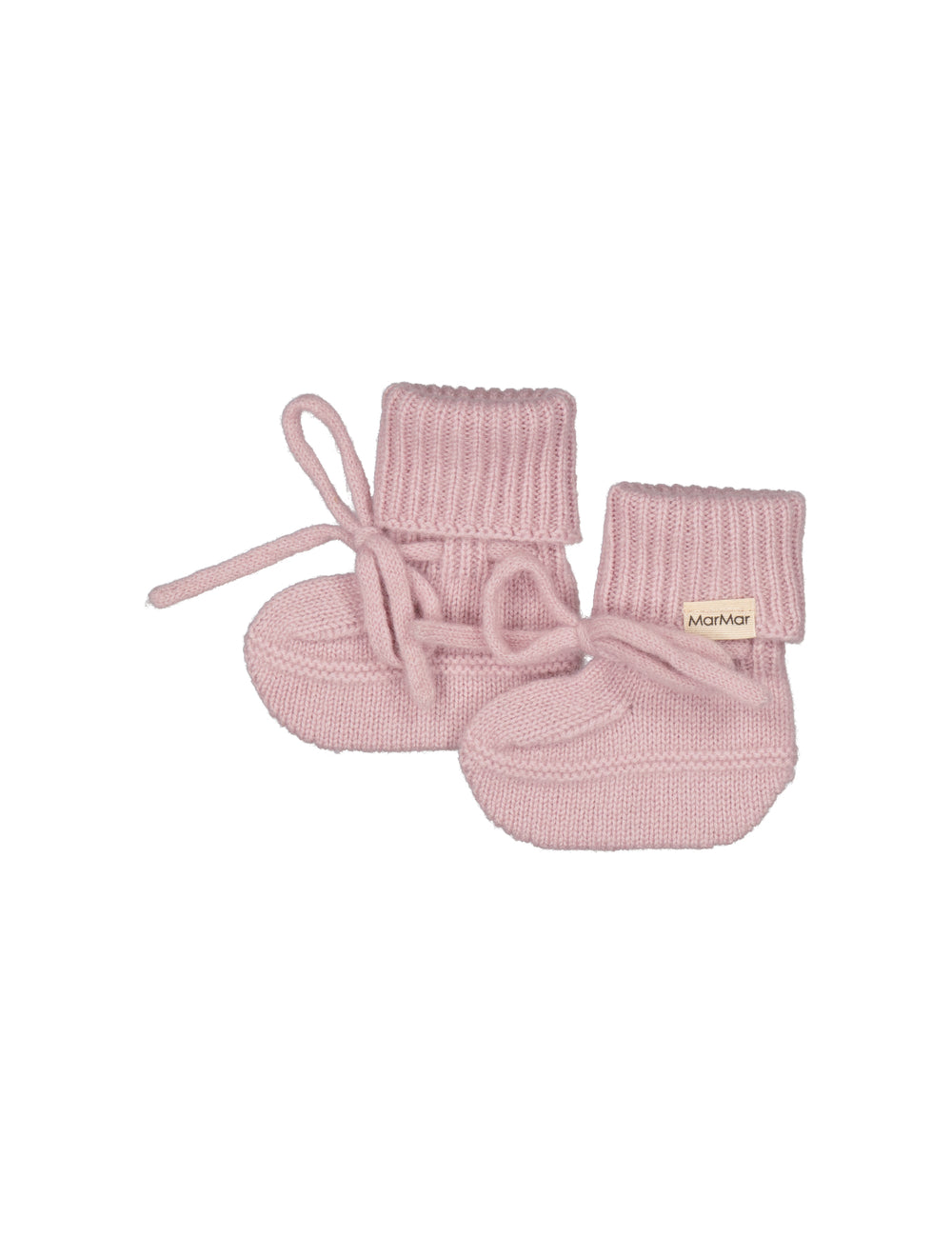 Barn iført uldstrømper i beige med grøn rib, orange hæl og blå tå