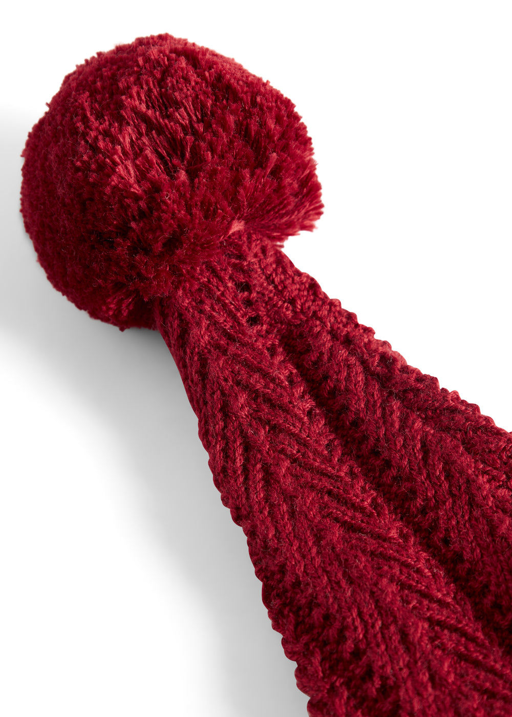 Rød strikket nissehue med kvast til baby
