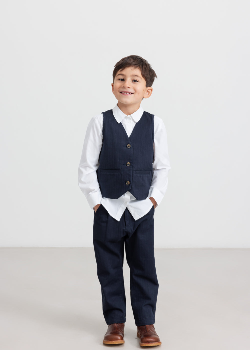 Klassisk hvid skjorte i blød bomuld, perfekt til både hverdag og fest. Skjorten har knaplukning foran, manchetter med knapper og en tidløs pasform, der giver et elegant udtryk. Et must-have i garderoben – ideel som del af et pænt sæt til festlige lejligheder eller som en stilren børneskjorte til hverdagsbrug.