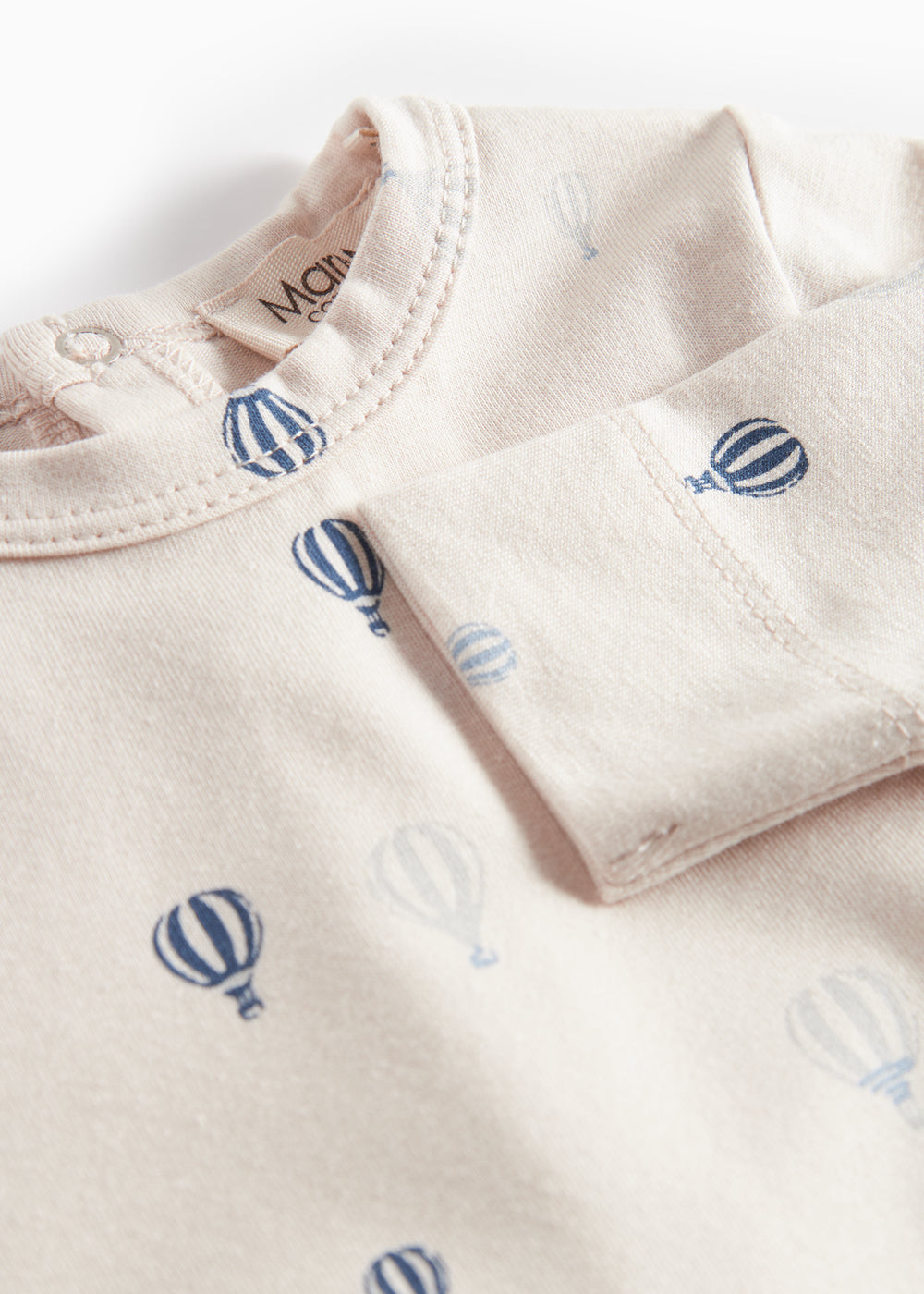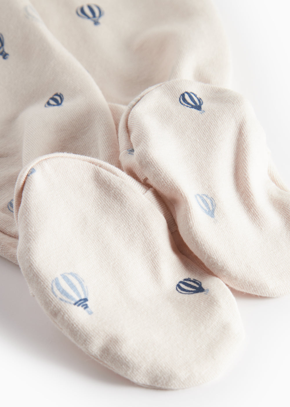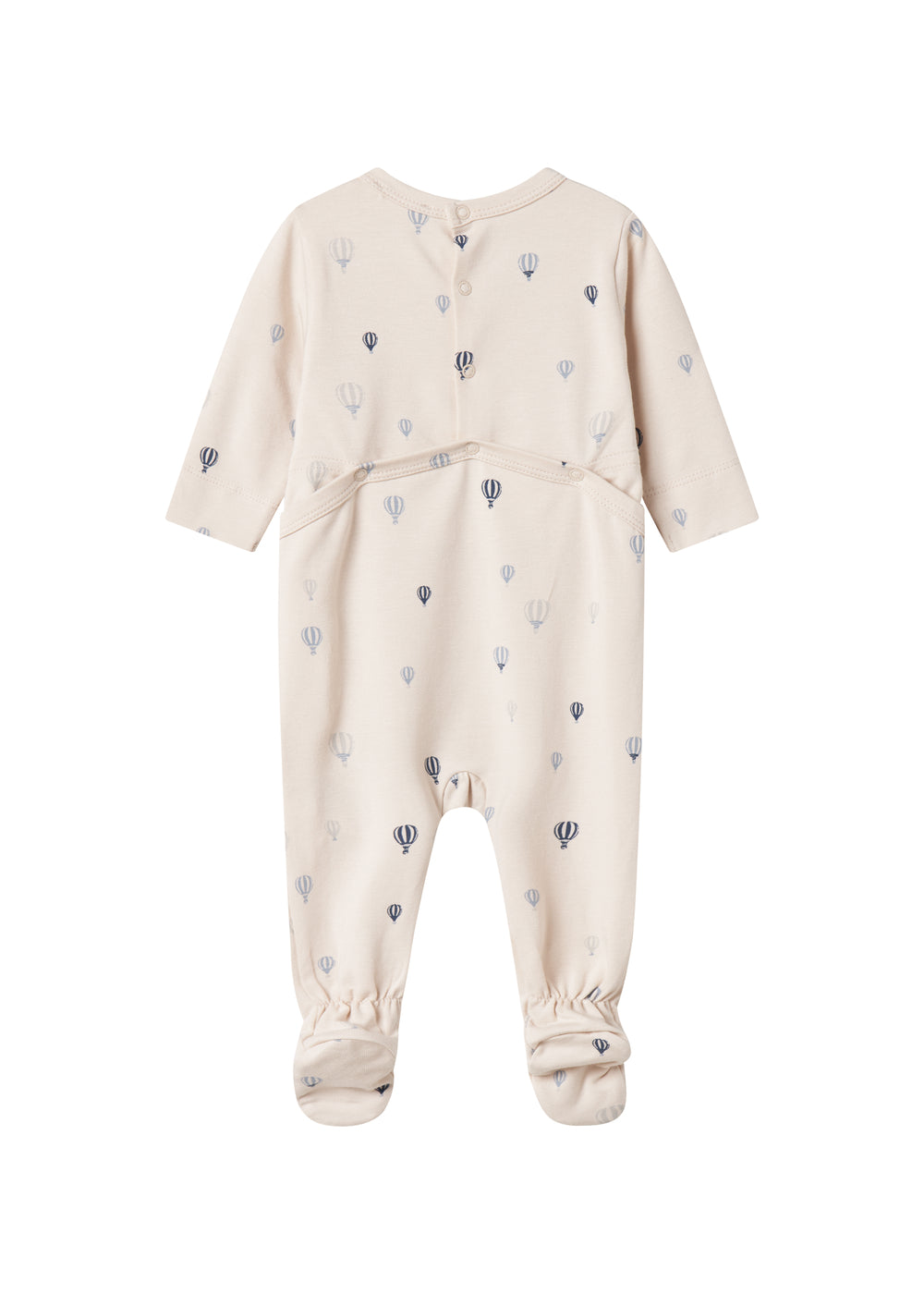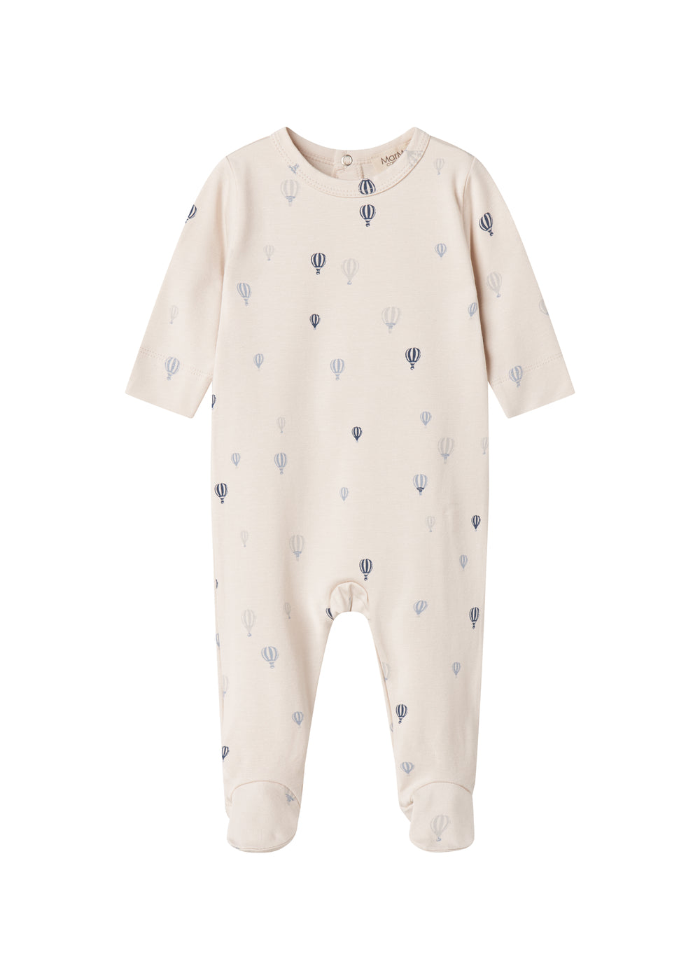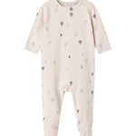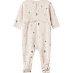 Langærmet heldragt med fødder til de mindste med trykknapper bagpå for nem bleskiftning. Heldragten har et fint print og er både blød, strækbar og behagelig at have på.