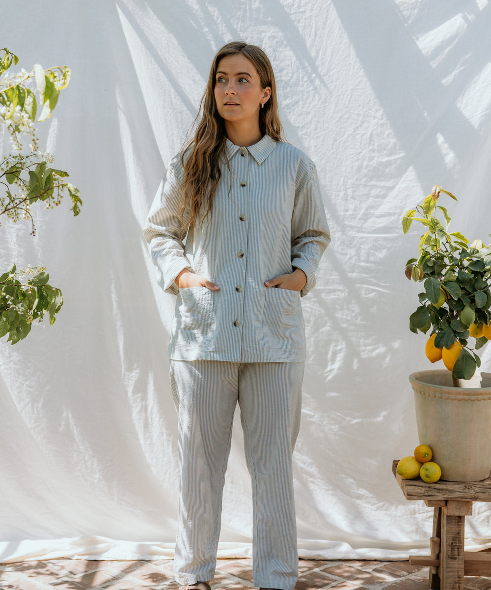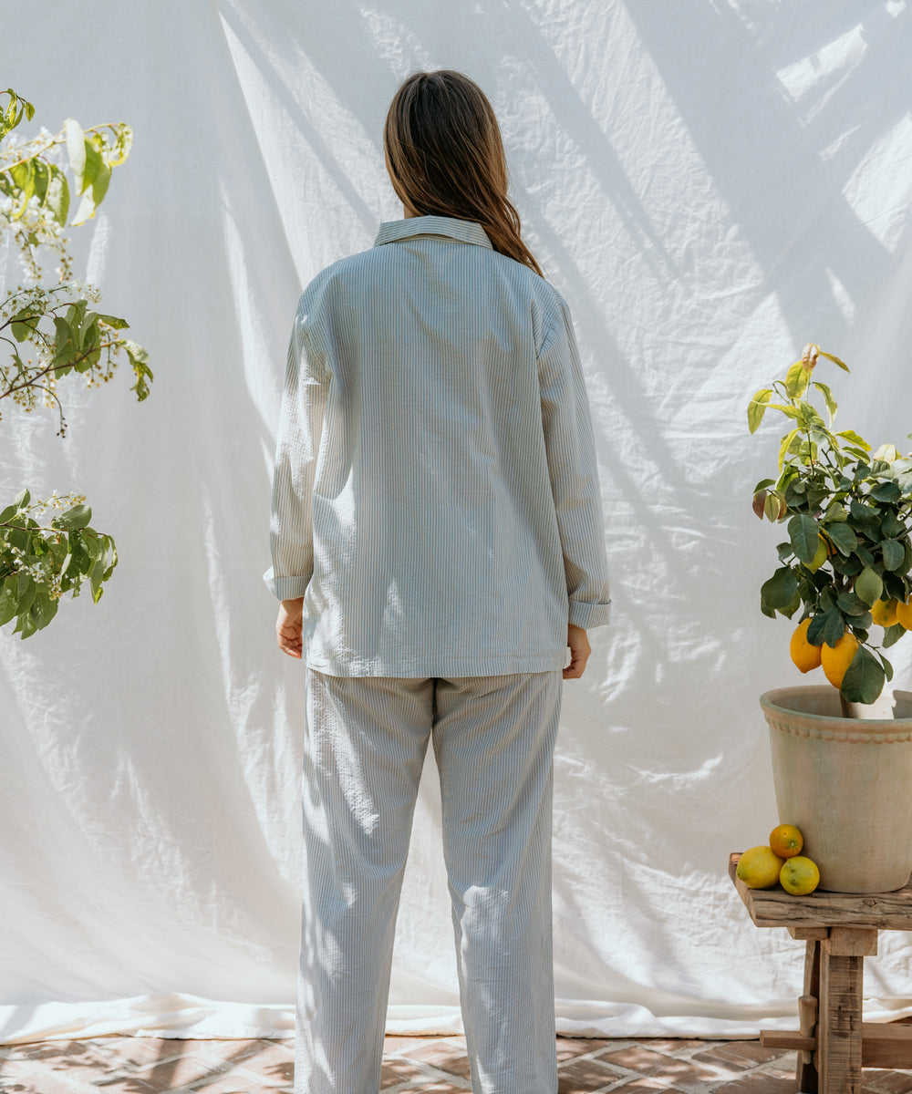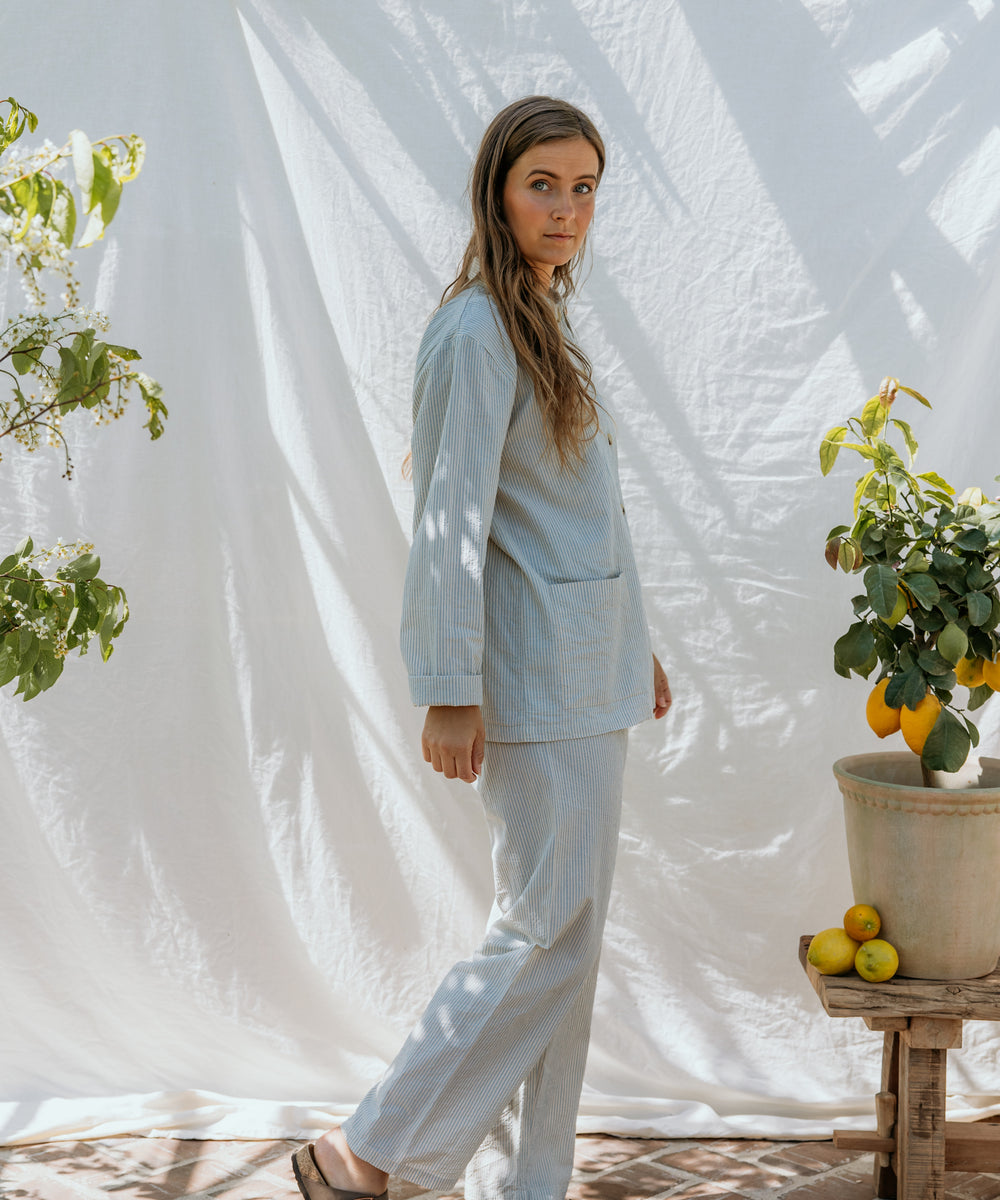 Pajama Set W, Pyjamassæt - Blue Stone Stripe