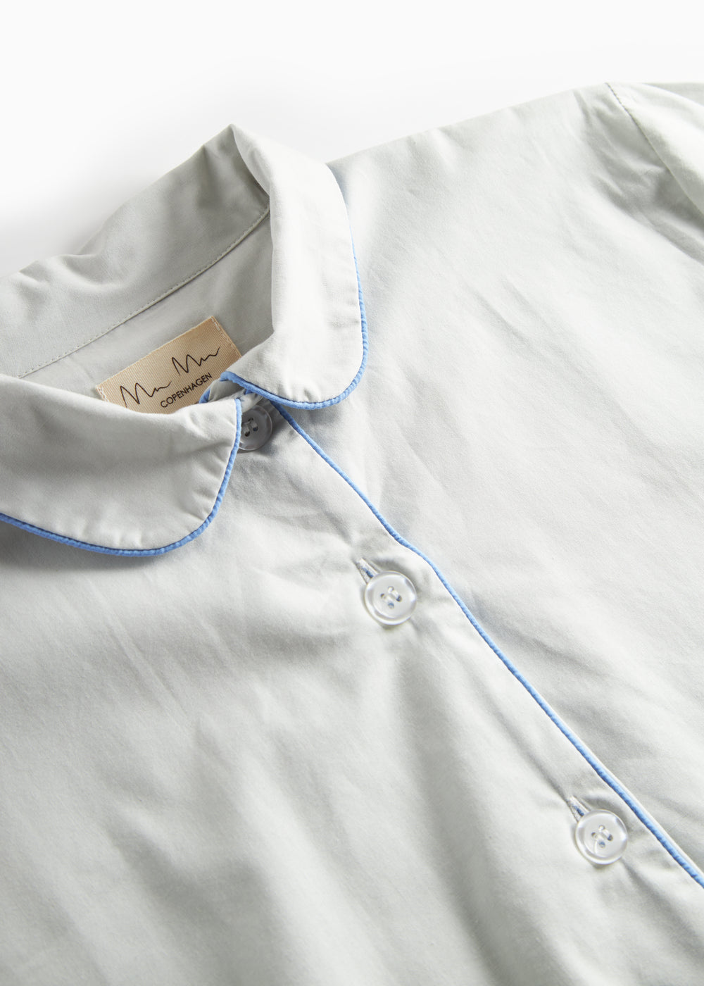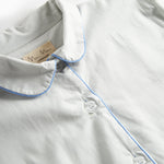 Pyjamassæt til kvinder med skjorte og bukser i en løs pasform. Skjorten har knaplukning samt to lomme foran og bukserne har elastik i taljen. Pyjamassættet har fine kontrast piping detaljer.