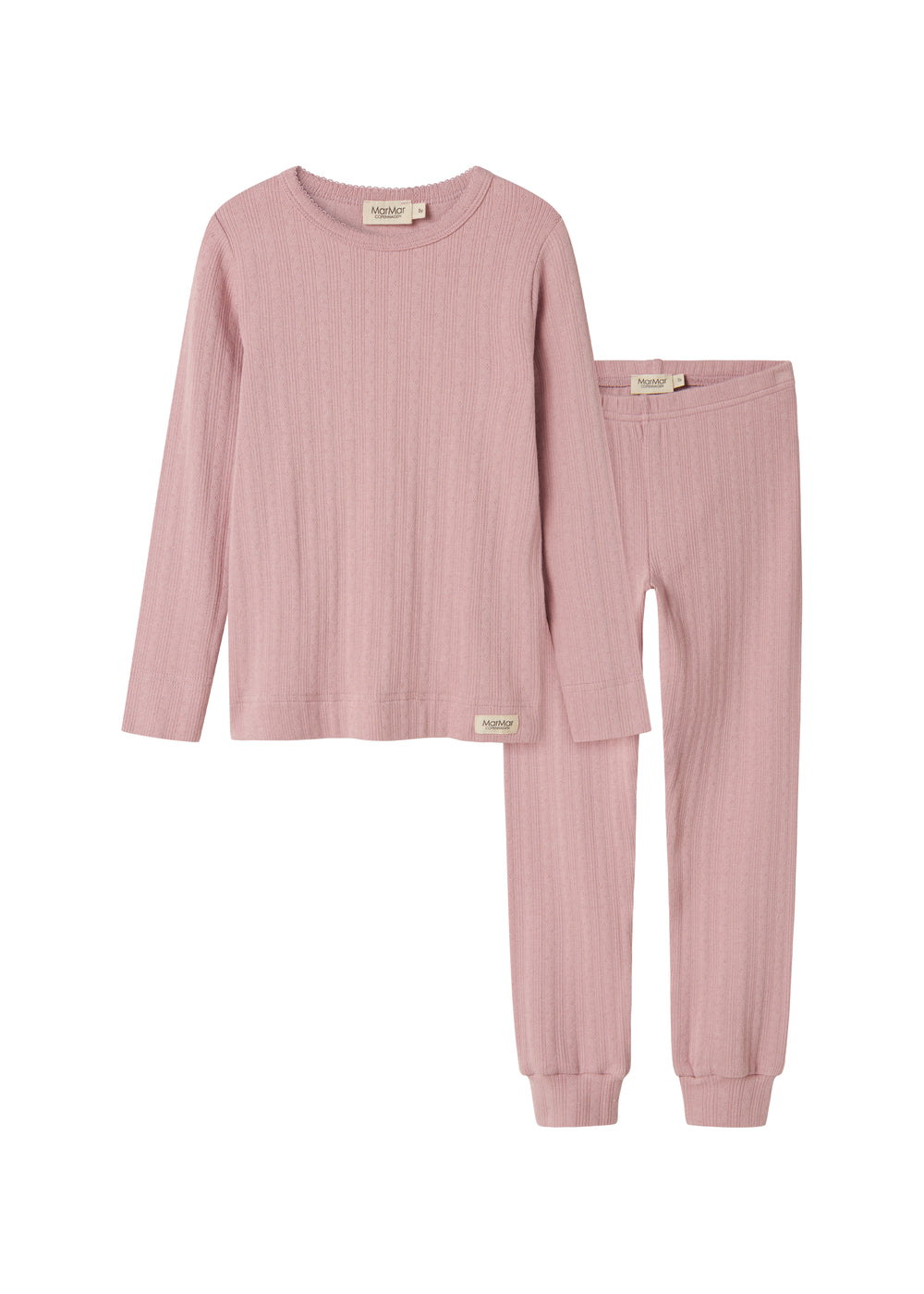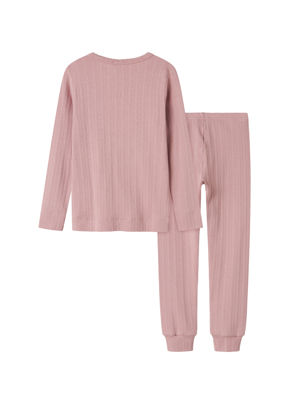 Enkelt og behageligt pointelle nattøj sæt til børn. Nattøjet er blødt, strækbart og behageligt at have på.