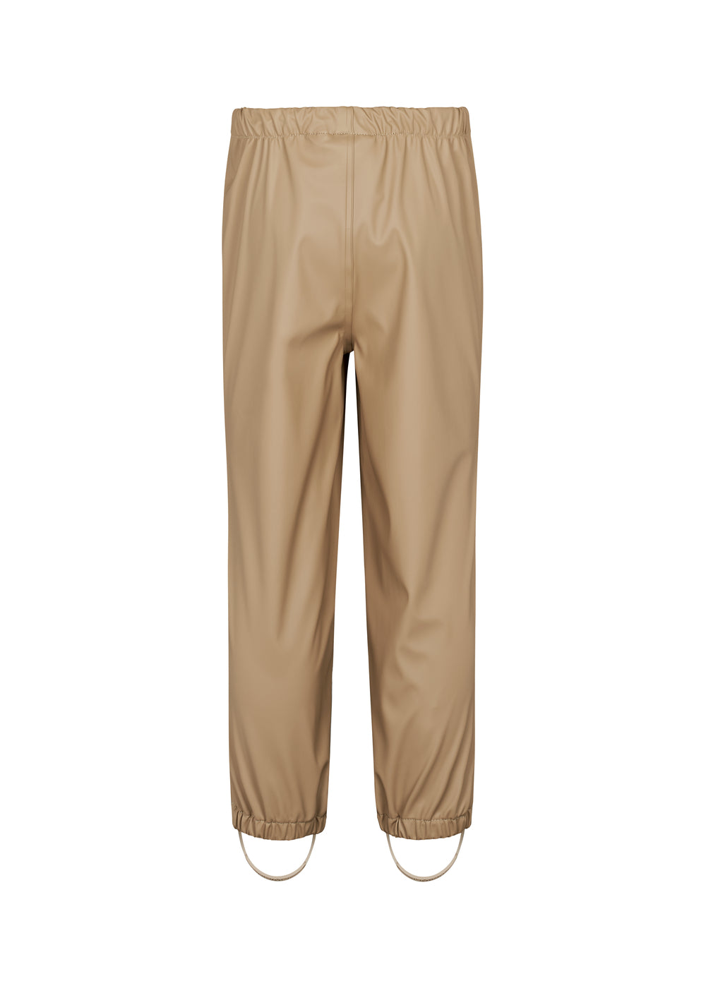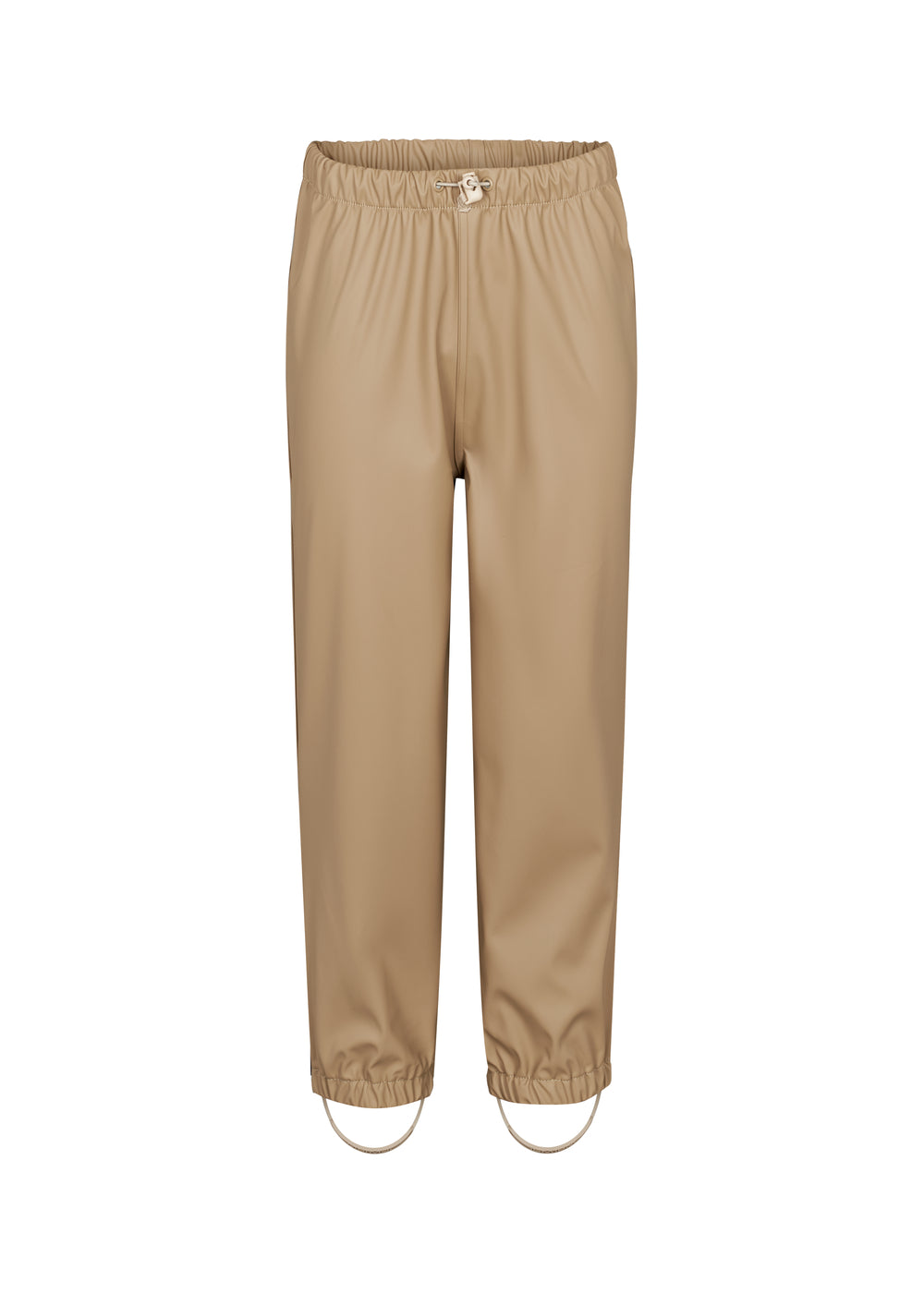 beige regnbukser til børn med elastik i taljen og fodstropper