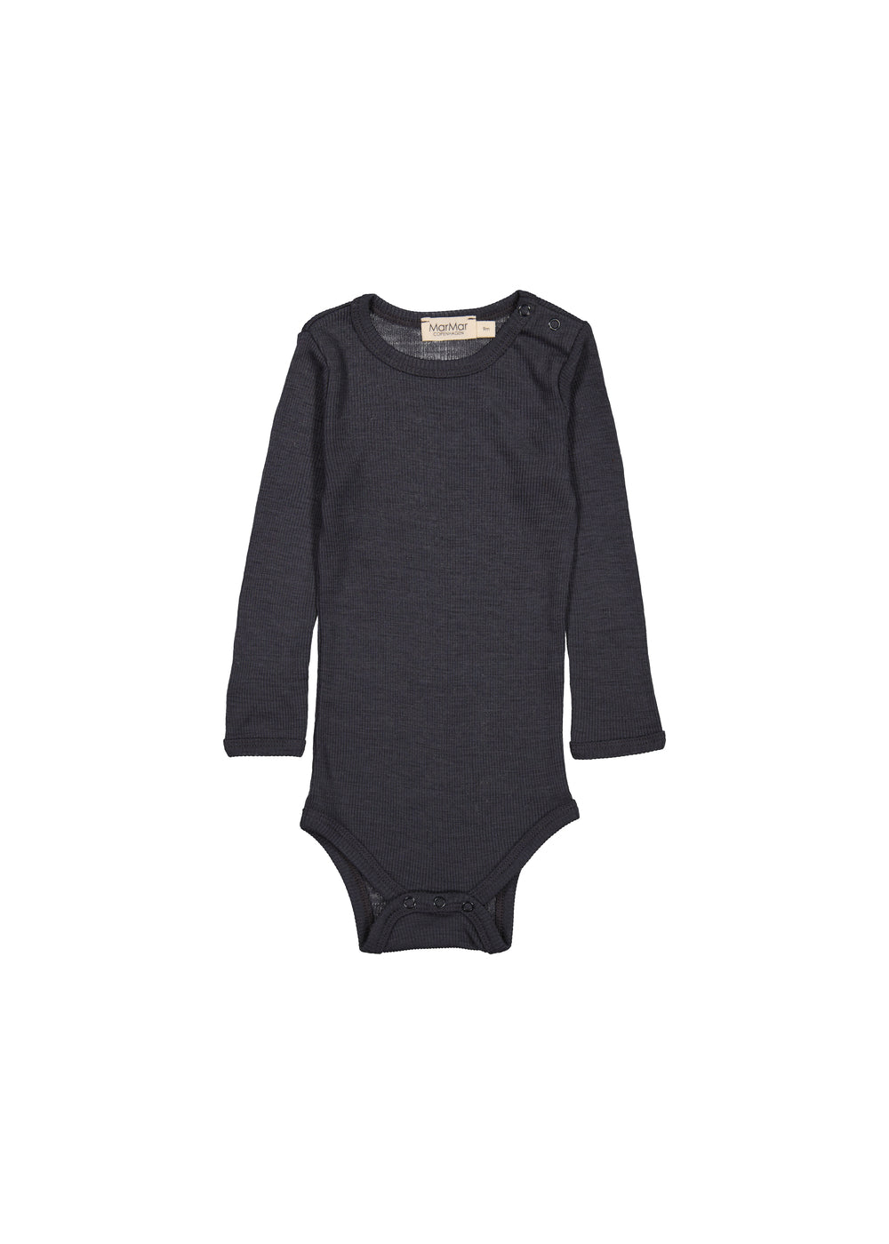 Enkel langærmet bodystocking i 100% merino uld, der bliver lukket med trykknapper på venstre skulder samt mellem benene for nem bleskiftning.