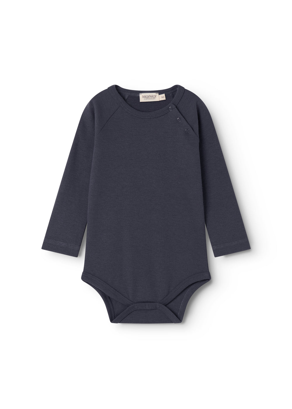 Enkel langærmet bodystocking, der bliver lukket med trykknapper foran venstre skulder samt mellem benene for nem bleskiftning.