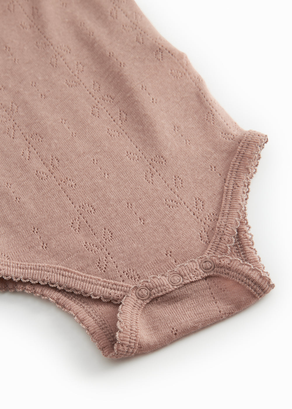 Benedikte, Uld Pointelle Bodystocking - Burnt Rose