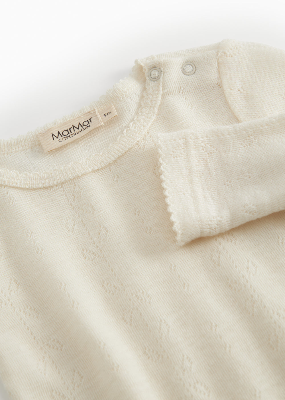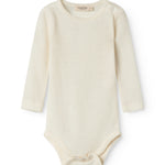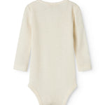 Enkel langærmet bodystocking, der bliver lukket med trykknapper på venstre skulder samt mellem benene for nem bleskiftning.