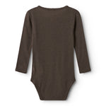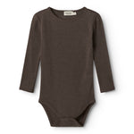 Enkel langærmet bodystocking, der bliver lukket med trykknapper på venstre skulder samt mellem benene for nem bleskiftning.