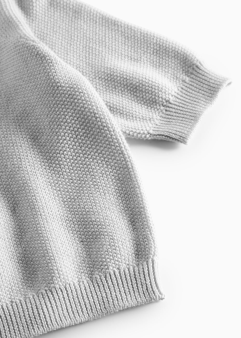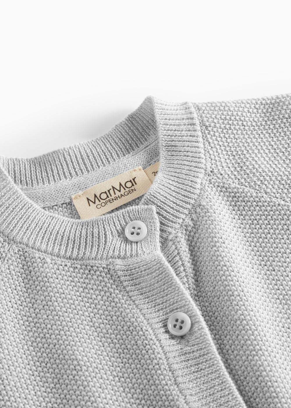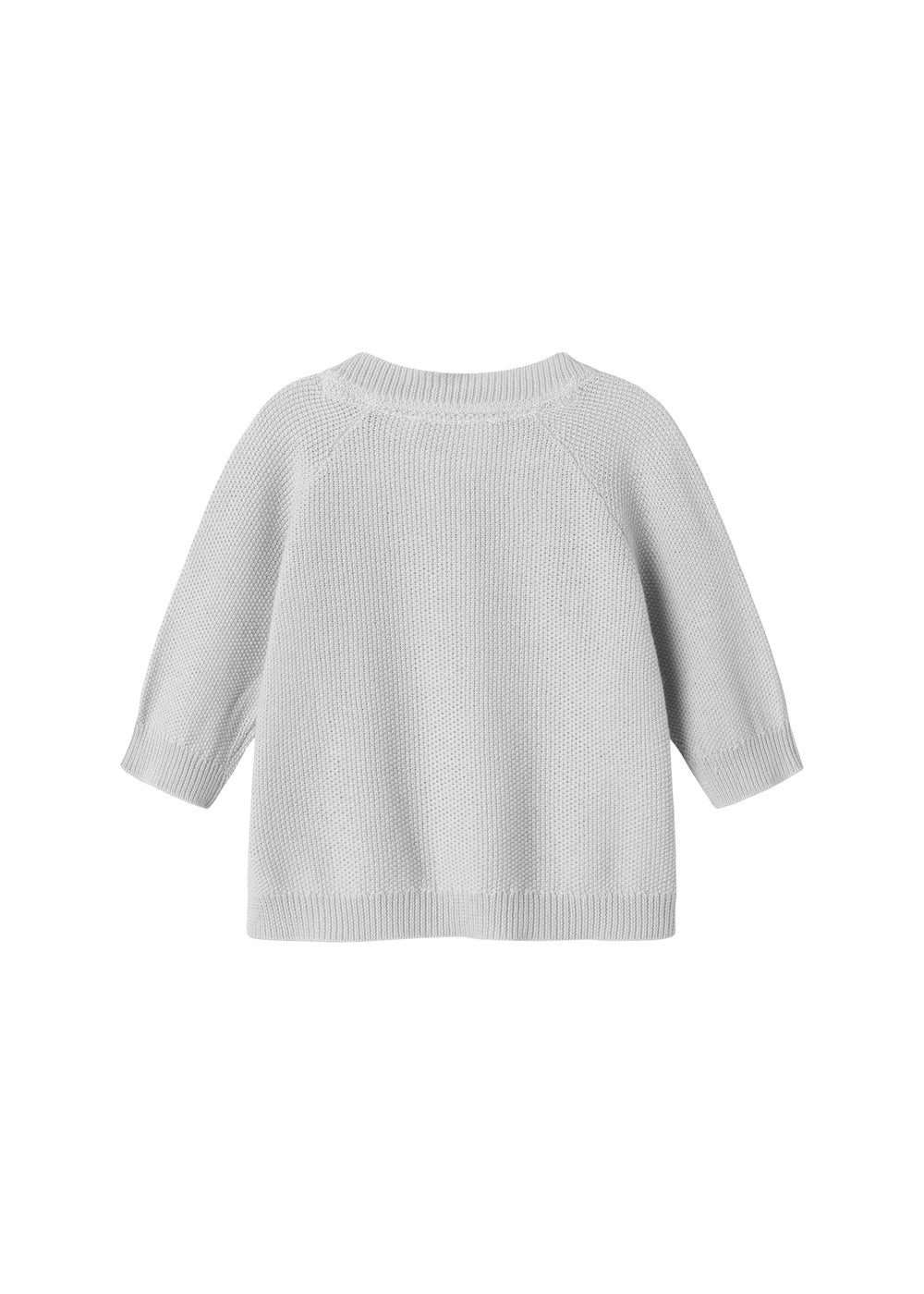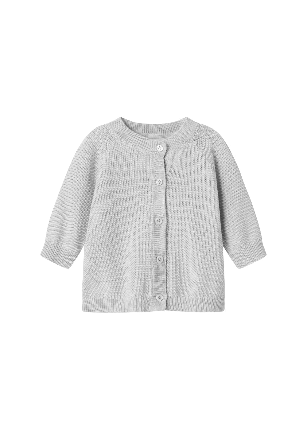 Strik cardigan til de mindste med knaplukning foran. Cardiganen er strikket i en tæt, struktureret perlestrik og har en rund halslukning og ribdetaljer ved hals, ærmer og bund for et behageligt fit.
