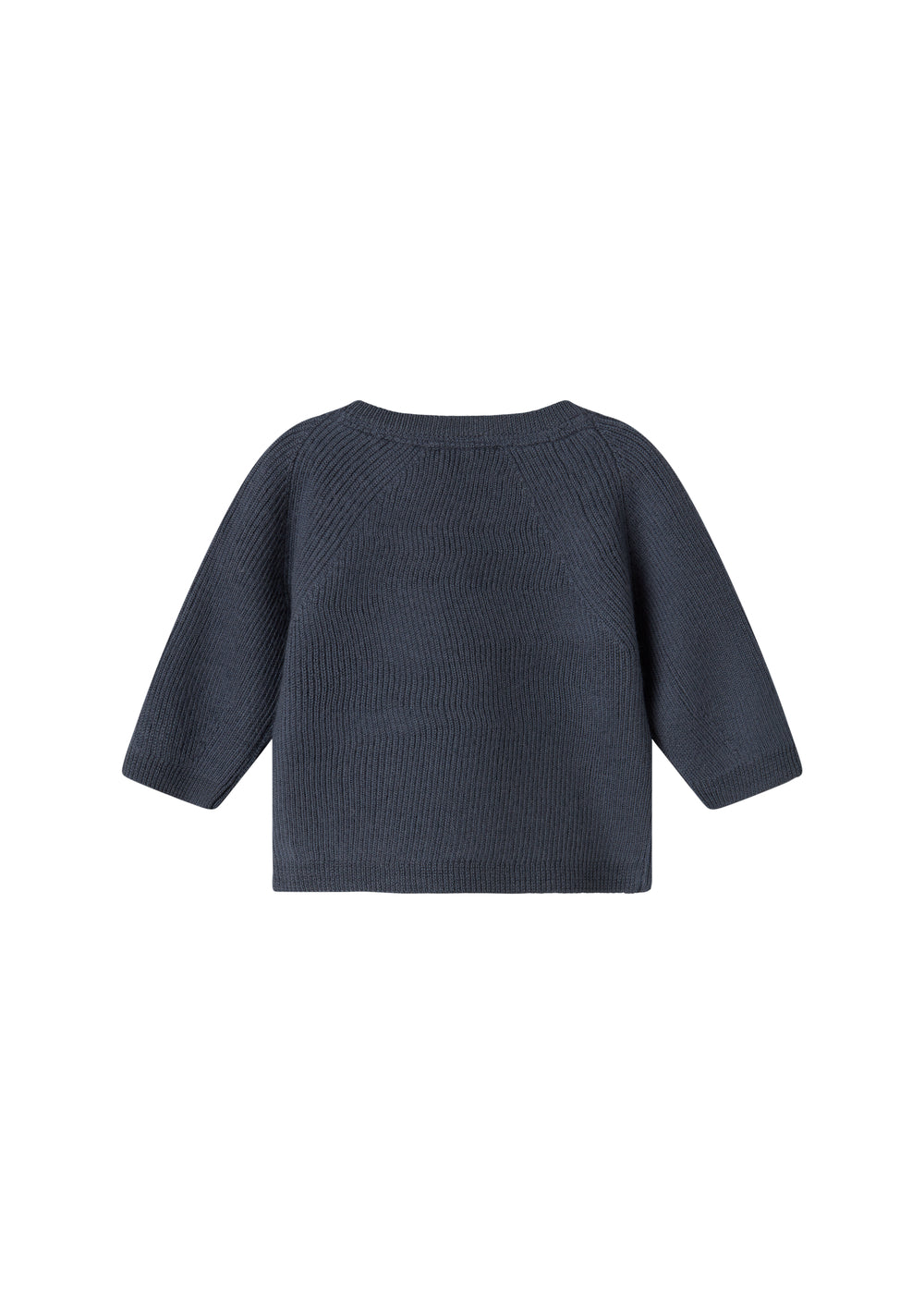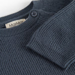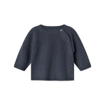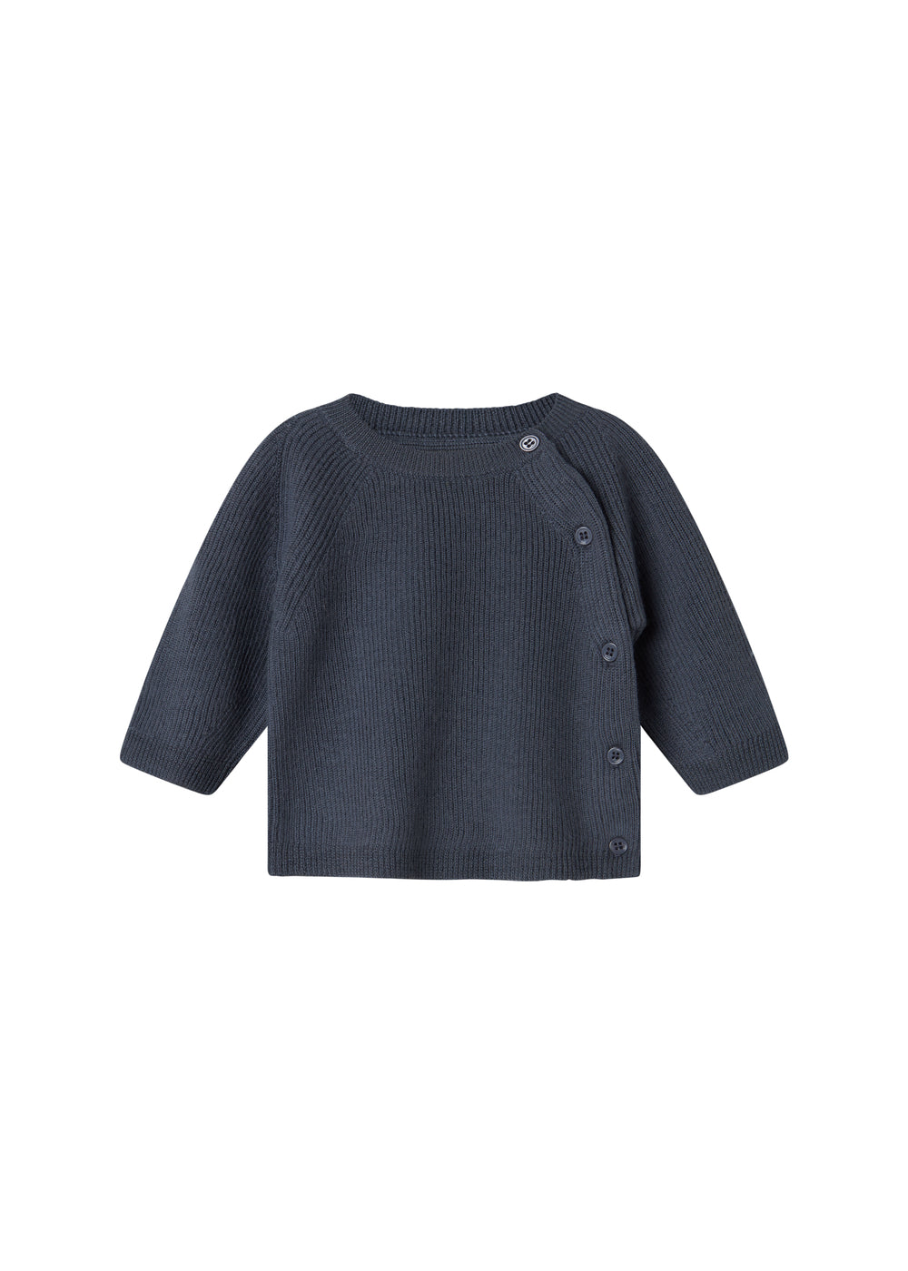 Strikbluse i merinould til de mindste med raglanærmer og knaplukning i venstre side. Strikblusen er både varm, blød og behagelig at have på.