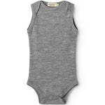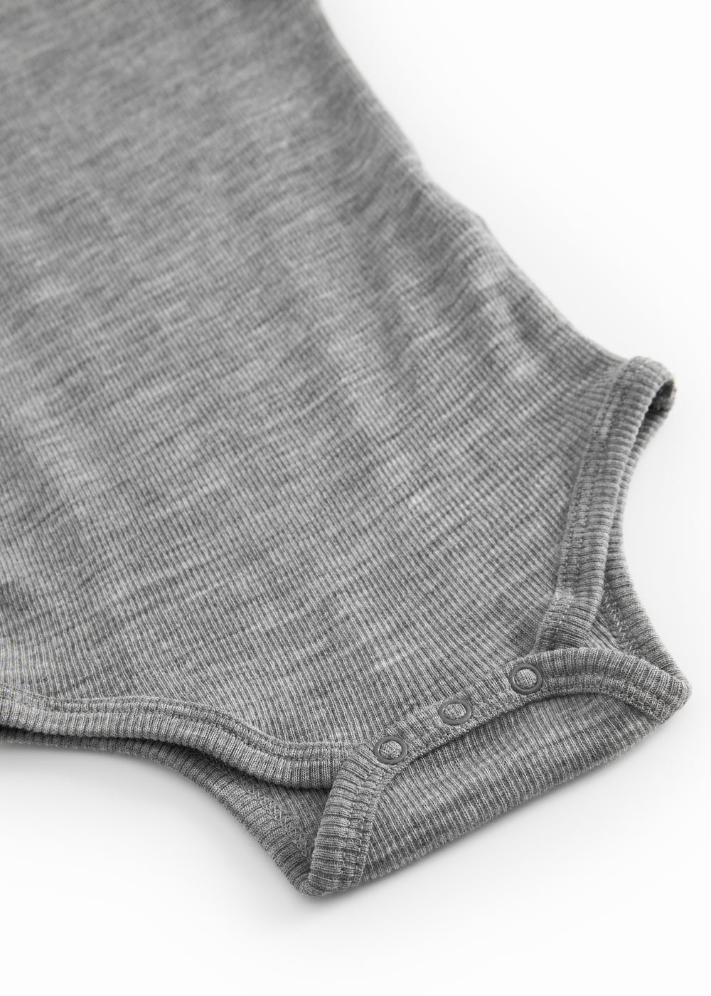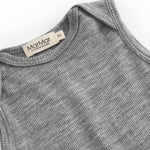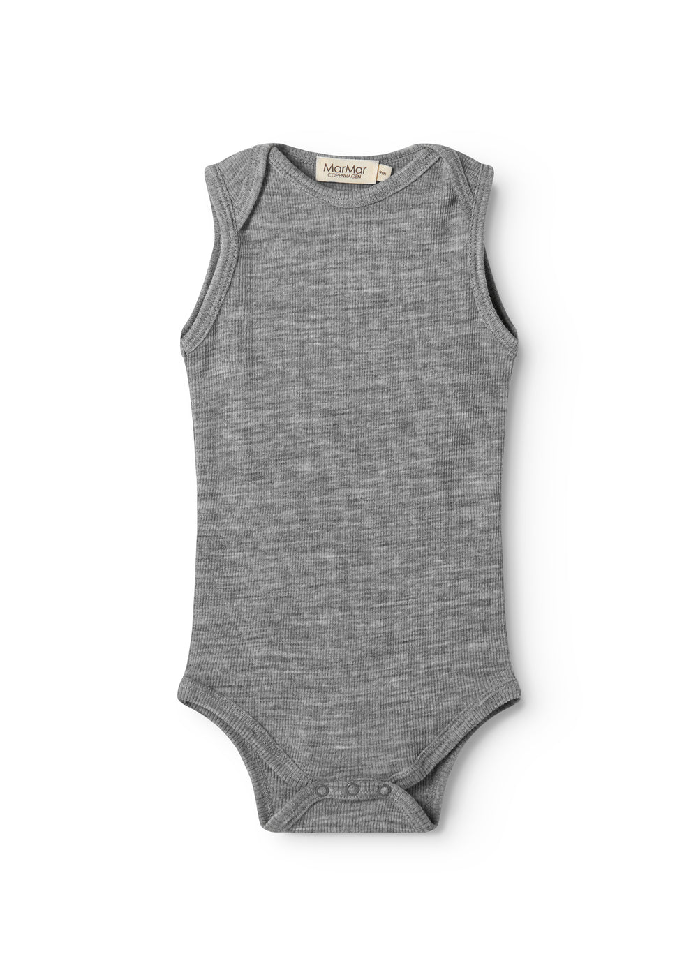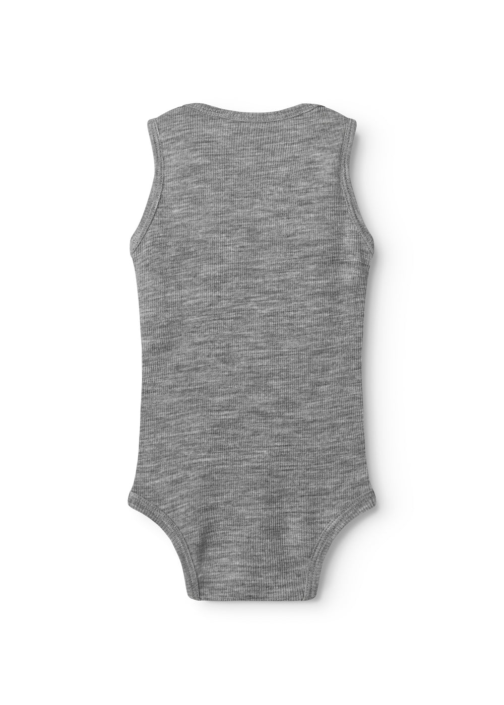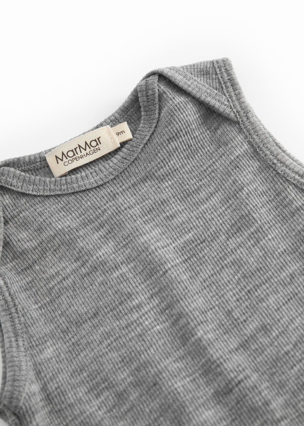 Bodystocking uden ærmer, med smart halsåbning uden knapper som let kan trækkes nedover kroppen. Lukkes med trykknapper på mellem benene for nem bleskiftning.