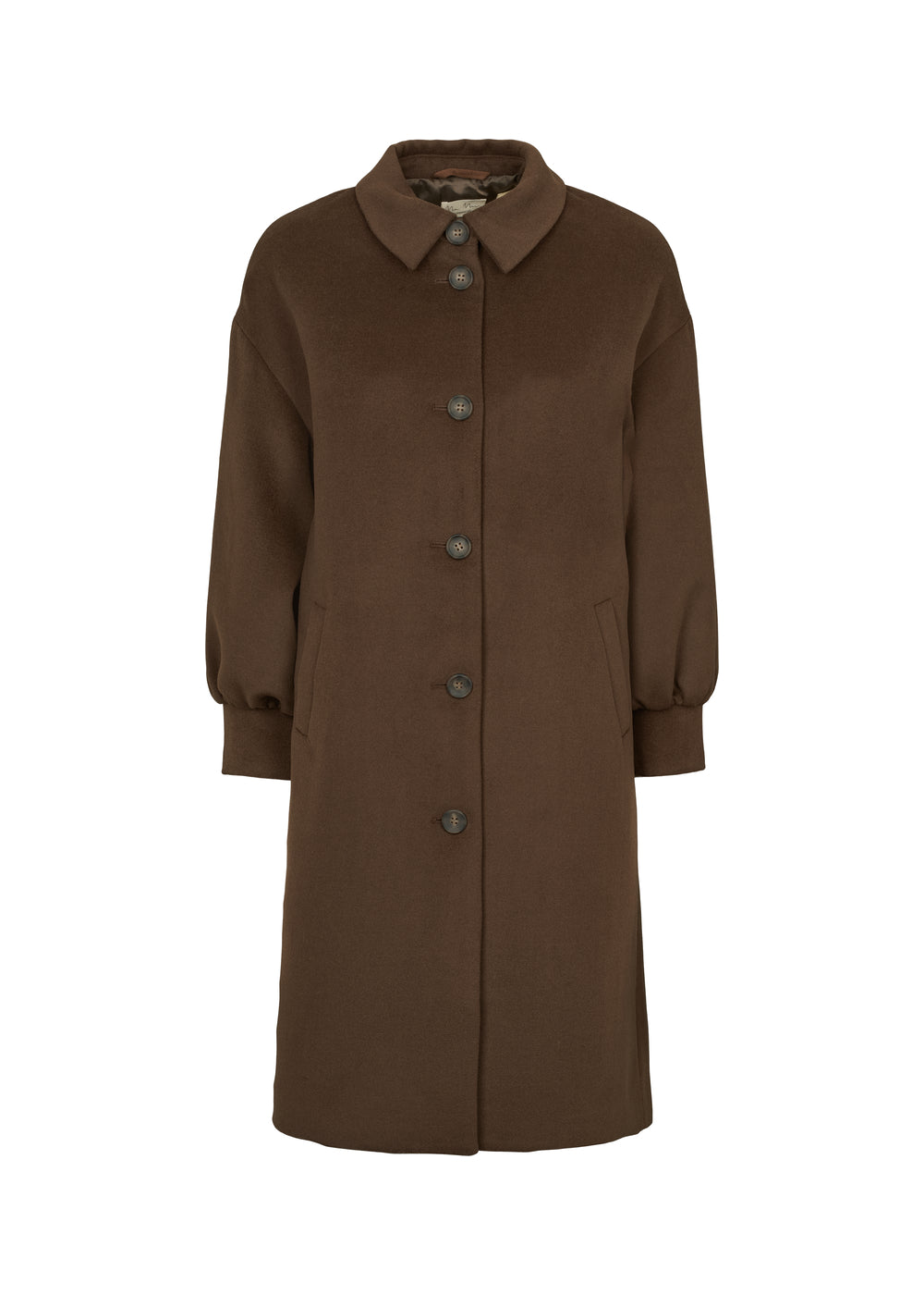 Klassisk uldfrakke med sød krave, 2 lommer og knaplukning